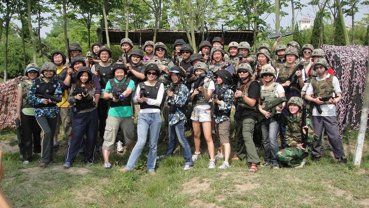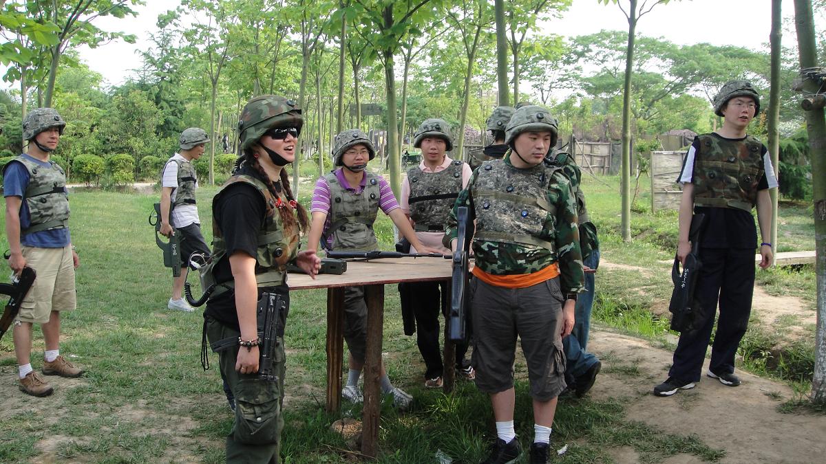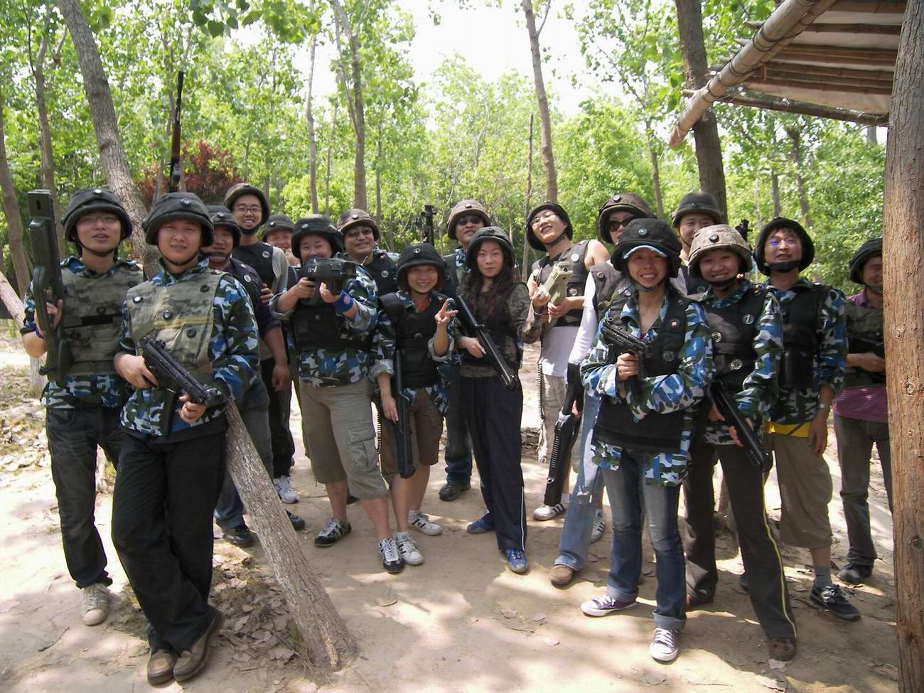 血战到底!(奉贤镭战纪实) 迷彩身影穿梭闪现,枪声,呼喊声,脚步声,爆炸声,此起彼伏, 您仿佛置身十面埋伏;掩体后洞黑的枪口,您可能只有一线生机。 镭战是一种新兴的时尚体育运动,利用高科技的镭射电子设备来模仿战斗的过程,名词解释: 真人cs:流行叫法有激光对战,激光对抗,cs实战等游戏是风靡全球的laser strike镭激运动的重要组成部分。参加运动的人员手持镭射枪支身穿迷彩军服在丛林与废墟中穿梭与“敌人”展开激烈的“战斗”,亲身体验只有在电影或电子游戏当中才能看到的场景。通过体验镭战,在娱乐当中放松,在运动当中创新,在激烈的竞争当中提高团队的合作。 2009年6月7日周六,在废人和funnymm的组织下,我们驴友自发组织的36人的擂战团队在奉贤海湾世纪林镭战阵地开战了!!!战斗从下午13:00一直战斗至17:00,空前惨烈。 以废人队长为首的红队和以funnymm队长为首的蓝队分组对抗,两派队员各分18人,我和慢慢兄弟等人由于和funnymm经常去外地旅游很熟悉,当然就成为一队啦。funnymm队长最大的特点就是很有指挥能力,并能虚心听从部下良好的作战建议,她虽然是个mm也没有参过军,但镭战活动却经常参加,具有一定的“实战”经验,所以理所当然地被我们蓝队战士们选为首领!我们运用的战术是偷袭战、阵地战和勾引战,所谓勾引战是慢慢兄弟发明的“狠招”,即:将自己队伍中几个漂亮mm挺身走出战壕勾引敌人来活捉,蓝队战士躲在战壕里等敌人走近集中火力加以消灭,尽管招数不雅,但很奏效,消灭了n多的“敌人”,哈哈。 “左翼突破,小心狙击手!”寂静的丛林中,几个人影迅速闪过,随着连续的枪声,远处传来急促的“滴滴”声。又一群身穿迷彩服全副武装的红队“敌人”冲了过来,丛林中展开“激战”。我带领蓝队一队5人小组顺利穿过开阔地带,在树林前方形成阵地,并借助阵地前掩体的优势,集中火力对密林中的红队“敌人”一阵狂扫,当场“击毙”对方6名队员…… “报告,敌人已经全部歼灭,我们胜利了!”一片欢呼声响起。funnymm笑着走出战壕,脱掉钢盔,露出两条标志性的东东---小辫子!说道:“打得不错,后两场是巷战,一定要发扬毛主席说的“敌进我退,敌驻我扰,敌疲我打,敌退我追”的战略思想方针,我看废人队长的红队战士个个都有点个人英雄主义,比较缺乏团队精神和相互配合,我们正好可以把握他们的弱点加以个个歼灭”。 我kao!她的语气俨然把自己变成一位前线将领啦!嘻嘻! 巷战的激烈程度丝毫不亚于丛林战,地形更加复杂多变,由于上海奉贤的镭战基地场地非常宽阔,身穿装备奔跑起来很费力,六月的天气艳阳高照,个个都累的满头大汗,可我们心里都别提有多兴奋了。我带领的5人小队战绩最佳,因为他们个个都是由退伍军人组成,弹无虚发,枪枪打中“敌人”的要害部位---胸部、头部,战果辉煌!我年龄40多岁当然较大,可好赖我年轻时参加过中国人民解放军东海舰队的五年海军,那时候在部队里天天训练,吃苦精神、团队精神及枪法自然是不用说了。这就像学骑自行车,只要学会了一辈子都不会忘记。 最后我们funnymm的蓝队发扬了血战到底的大无畏革命精神,5场镭战打下来,每一场都彻底、干净地消灭了以废人队长为首的红队,取得了最后的胜利!耶!!!  (镭战队员合家欢)