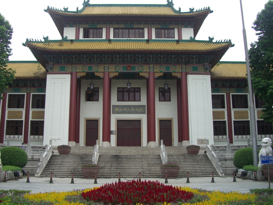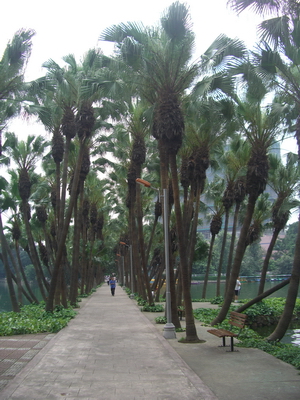 ((古色古香的广州市政府)) 从人民公园出来,沿着中山五路走到了北京路。一到北京路口就见到了罩在玻璃下的千年古道遗址。透过厚厚的保护玻璃,还是很清晰地见到下的面明代路面和宋代路面,想想不同时期的人们都是走在这条繁华的街上购物,再去逛北京路会更觉得兴致盎然。只是参观完千年古道遗址没多久,还没来得及细逛一家店,就发现前面人群聚集在一起围观着什么。走近一看原来是有人爬到了三层楼的广告牌边,消防人员正在想法救他下来。先是一名消防员和一名警察通过升降梯靠近该男子,与他说话沟通着什么,随后消防员和警察都先下来了。这时见到那位年轻的男子情绪异常激动,不停的地抽泣。一会消防员就带了另一位年轻的男子一起上了升降梯,大概是带跳楼男子的朋友过来劝他的吧。想着消防人员一定会将问题解决的,我们这些看热闹的多了其实对他们的解救反而没好处,就没再观望,继续逛我的街去了。 北京路上各式的服装店鞋店都很多,归纳起来这几天见过的鞋店最多的就是百丽跟它旗下的其它品牌了—天美意、他她等等。虽说也很喜欢只是觉得跟本地的打折幅度差不多就没想过要买。将近11点时走到了北京路上的天河城,见五楼有一家必胜客就立刻到了餐厅吃比萨去了。吃完比萨再在天河城里逛了一圈出来已经是中午1点多了。继续沿着北京路往前走,走到一个公交站点实在走不动了便等车去珠江边看江景。在公交停车点的对面又见到了一家7天连锁酒店,不禁感叹7天在广州的连锁速度。 上了一趟公交车,只坐了1站车就到了珠江边,不记得那里是长堤还是东堤、西堤了。沿着江边漫步,一路上见到了许多跨江大桥。有一个渡口还有渡轮,轮船一两分钟就可以从渡口到江的对岸,如果晚上有空的话坐珠江夜游的船看看广州的夜景也是很不错的选择,只是我每天都逛得很累,又觉得1个女孩子晚上出来怕不安全,就留着下次来时再看珠江夜景吧。 沿着江边走了许久,天气渐好,太阳露出的一小片的光芒也有些刺眼。刚想着找个荫凉地休息,抬头看到了街对面的一座颇有气势、有些历史感的欧式建筑,上面写了几个黑色的大字“邮政博物馆”,于是跑到里面去逛,只是可惜的是博物馆里的二、三楼的展厅都不开放,只有一楼卖一些邮品。见到有人买了明信片在上面盖很多的纪念邮戳蛮有趣的,便在展销中心买了一套喜羊羊与灰太狼的明信片,把那些像端午节纪念之类的七八个纪念邮戳全盖了一遍。 从邮政博物馆出来后坐了公交车(不记得是31路或者是38路了)去了流花湖公园。 想去流花湖公园的源于在网上见到的一张照片:照片拍的是湖中间的一条路,路的两边许多棕榈树。觉得走在那样的路中间一定是一幅美丽的风景画。进入公园后一眼见到了流花湖,湖的中央还有一个类似白宫的建筑,正午时分的白宫倒影非常的漂亮,本以为是什么景点,走到白宫对面的湖边才看清原来白宫是一个酒家,所以并没有去上面参观了。 没去湖心岛上的白宫也没关系,流花湖公园里到处都是景致,不像在越秀公园老是在爬山。并且这里有我向往的那条两旁有棕榈树的路,找到后我来来回回走了好几遍。 公园里植物很多,一派南亚热带风光,很多植物上都有文字介绍的吊牌,让我增长了不少见识,终于知道在南宁、北海街头到处可见的吊着很多树根的树是高山榕、细叶榕之类的榕树;知道了“下雪”的是木棉树——因为木棉花絮满天飞舞,看起来就像冬天里下雪的场景,只可惜没见到火红的木棉花齐整的开放的样子;知道了我向往的流花湖的图片中的树叫蒲葵,是棕榈科的一种,还见到了“瘦高个”的假槟榔、一棵不知什么原因叶子蔫蔫的烟火树。 (ps:回家后很自豪的告诉老公认识了榕树的事情,可他一点不以为然地说:我早就知道那些树是榕树呀,在阳朔时不还特意去看了一个景点—大榕树嘛。我晕,原来早就应该认识的呀……) (我所向往的流花湖公园) 从流花湖公园的正门出来,在附近的公交站牌见到有从六榕路过来的公交车,便横过马路到了对面的公交站点准备坐车去看六榕寺,不过没想到那趟竟然是来回不同的路线,这边没有去六榕路的路线,我只好随意坐了趟车到了府前路,又逛了一会市政府后,沿着府前路到了广州市人大。 这时忽然有一个重大的发现:原来中山纪念堂就在人大的对面。这才想起准备行程时见到一篇文章的介绍:广州也有像北京一样的城市中轴线,自北向南依次为:越秀山的镇海楼、中山纪念碑、中山纪念堂、市人大大楼、市政府大楼、人民公园、起义路、广州解放纪念碑、海珠广场、海珠桥至刘王殿(昌岗路街心花坛),全长大约8千米。这条中轴线上的景点这三天都几乎都踏遍了,不过都是随机看公交及地铁线路乱走的,没想到它们之间竟然有这么紧密的联系呢。 再次见到中山纪念堂时是下午5点左右,觉得还可以再逛逛就又坐了地铁到了烈士陵园。在正门门楼处,周恩来总理题写的“广州起义烈士陵园”赫然醒目的呈现在眼前。花3元买了票,一进烈士陵园正门就见到广场前方直冲云霄的广州起义纪念碑。纪念碑是三座大山上手握枪杆的造型,这个造型一定是想说明“枪杆子里出政权”吧。 沿着广场向左边的小道走有一座广州革命历史博物馆,可惜的是错过了参观时间,未能去里面参观。只能摸了摸门口的海防大炮,想像当时广州人民抗