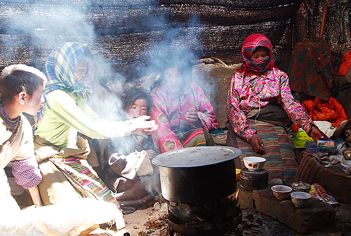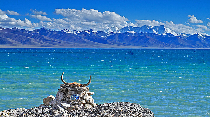 抱着多年来对西藏三大圣湖之首的纳木错的向往,散团后我和一位朋友又去了一趟纳木错,并准备在湖边住一宿。考虑到纳木错的海拔有 纳木错位于西藏当雄县与班戈县之间,距拉萨 在到纳木错的公路旁,我钻进了这座用牦牛毛编织的毡房,一家人其乐融融地围坐在火炉旁,牛粪燃烧时爆出轻微的声响,毡房里弥漫着酥油茶的芳香,在征得他们的同意后,记录下了这游牧民的生活。在高原上由于紫外线特别强,当地人的皮肤都被严重灼伤,你看这位少妇由于皮肤都被严重灼伤,皮肤已失去光泽,略显苍老。 纳木错的溶洞里有绘于2000年前的岩画,内容为各中动物和狩猎的情景。 在纳木错的扎西半岛上,有两个并行的大石柱,被佛教徒称为“守门怒神父母像”,亦称迎宾石。 沿川藏南线从成都到拉萨的公路里程约为2100公里,由于我们还经夹金山去了四姑娘山,然后转道丹巴、新都桥回到国道318线,在拉萨又去了一趟圣湖纳木错,再加上中途还去了一些其他景点,估计全部行程约3200公里。在川藏线上,由于垂直落差大,特别是穿越了横断山脉,随时都在翻越大山,一会儿到了四、五千米的山顶,一会儿又下到二、三千米的山谷。我估计和统计了一下,这一趟的行程85%是在海拔