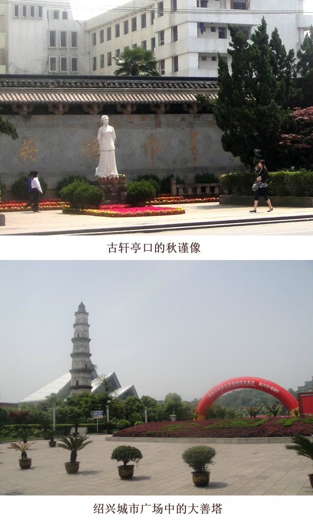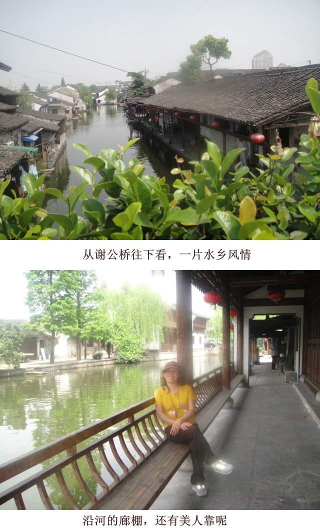 穿街走巷到了西小路,可惜吕府十三厅未对外开放,不过西边有个谢公桥值得一看,好笑的是,我在桥边找了老半天,终于在晒着的棉被底下找到了一块石碑,上书谢公桥三字。顺着谢公桥石阶拾级而上,站在桥上只觉清风拂面,又见河边洗衣裳的妇人,偶而传来棒棰声,还有那绍兴软语。回头见那飞翼楼远远立在府山山头,仿佛尖尖的一只笔。 走下青石板阶梯,沿着河边廊棚走走,没见着什么人,只几位老人坐在家门口,抽着香烟,偶而抬头看看闯入他们宁静世界的俗客。说实话,这里比西塘还真,还美。 照了好多好多的相片,依依不舍的离开,师傅带我们沿解放路南行,一路经城市广场,古轩亭口,见秋谨雕像依旧孤寂地站在那里,就这样一个半小时逛了小半圈绍兴,中午回到了咸亨酒店,准备学那孔乙己,喝他几杯老黄酒,配上那想了许久的茴香豆。