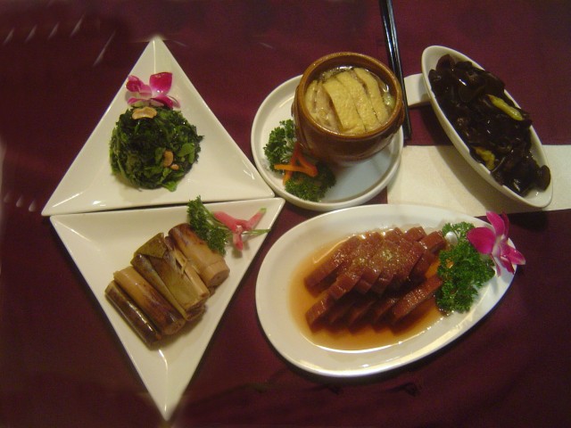 绍兴醉鸡、凉拌腰果万年青、桂花糖藕、烤竹荀