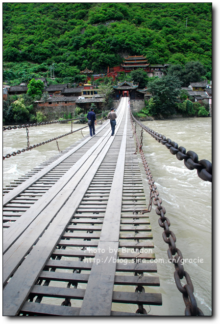 泸定桥,我相信在每个人的童年记忆中都代表着英雄,站在桥上,脑子里闪现着当年电影中的枪林弹雨,冰冷的铁索似乎还是滚烫,以至于我不敢去触摸,桥上的木板似乎是昨夜刚刚铺就。