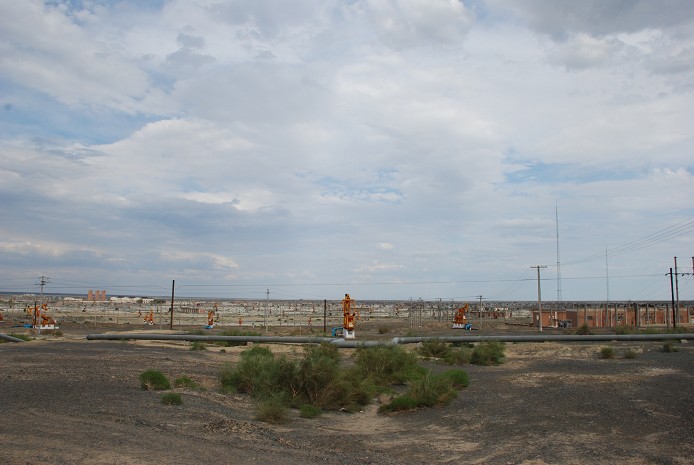 7月14日(禾木——奎屯) 今天也是一天的赶路日,景点是魔鬼城和克拉玛依大油田。克拉玛依油田发现于1956年,是新中国诞生后发现的第一个油田,现在已经开采了几十年了。这个油田就在国道旁,没有门票。其实看的就是那种当地人称为“磕头机”的抽油机。在新疆随处都可以见到这种“磕头”机,但在克拉玛依油田上,这种机分布的密度很高,像蜜蜂窝一样,场面较为壮观。 与“磕头机”合照后,我们很快就到达“魔鬼城”了(40元/人)。“魔鬼城”是典型的雅丹地貌,她得名是因风蚀地貌,一旦起风,这里就会出现鬼哭狼嚎的声音,故名“魔鬼城”。正所谓“三分形象,七分想象”魔鬼城的地貌有的像驻守的勇士,有的形如万马狂奔,有的如千驼相聚,有的如神佛,栩栩如生;每一种景象,若稍稍变换角度,又是不同的奇景。《卧虎藏龙》、《七剑下天山》也曾在这里取景。 受“7.5”事件影响,魔鬼城也是很少游人,做生意的一见到我们就立即招揽,其中有几个维族人还会说粤语,真是厉害。我们就坐了他们的骆驼,走一个小圈10元,走大圈30元,我们走了个小圈,尝试一下骑骆驼的滋味。 晚上住在奎屯市,具体什么宾馆,我忘了。一个标间一个三人间,合计120元。