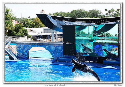 作者:不闲 话说离开大烟山国家公园的前晚, 小溪对面的那个营地来了4个年轻的阿拉伯兄弟. 这帮加伙晚上喝酒砍大山,喧闹无比,全然不理会10点后须安静的规定. 俺们早就睡了, 被吵醒几次; 本想去干涉, 却又懒得动. 听他们有时讲得激动万分, 没准儿是在为拉灯欢呼,亦或是在作新的计划? 本想第二天起来也把这帮家伙吵醒,却不料他们起得更早...得, 要是布施大人再在中东发疯干它几票, 俺可没意见了。 一离开大烟山, US441立即变成了高速公路. 经亚特兰大转上I-75, 天黑前就顺利抵达1050公里外的奥兰多。 四。奥兰多 在奥兰多住在位于Kissme 的Rodeway Inn, 便宜($40), 网上评价还不错. 在大烟山那几天由于只能"白洗",只好找了顶瓜皮帽扣住油头; 一住进旅店,立即清洗一通,总算重见天日. 这里离I-4仅1公里, 靠近各公园, 而且Premium outlet Mall 就在旁边. 往东2公里的麦当劳旁边就有一中式自助餐厅, 尽管不怎么样, 但也比游乐园里的那些洋餐强许多. 俺们只去了海洋公园(Sea World)和环球影城,迪斯尼已没什么吸引力(去过了)。海洋公园提前7天在网上买票的话每个人都是儿童票,1年有效,如不去可全额退票。兔子们要注意的是,杀人鲸“瞎目”(Shamu)会绕场两周, 卖力的把前排观众浇湿(前15排都不安全!). 但大无畏高高兴兴去"送死"的老美还是无穷多(一贯作风也). 环球影城很不错.第一个项目"埃及木乃伊"就把俺下了个半死: 在洞中当鬼火燃起时已烤得脸难受; 要是操作员喝高了多加它两瓢汽油,那不把俺们全BBQ啦? 那地铁地震也是吓人无比, 左边大火熊熊且一辆油罐车翻滚而下,右边洪流滚滚, 前面另一列车又撞过来。。。 女士们被代顿的空军博物馆吓怕了, 落下了后遗症, 一听与飞机沾边的东西就摇头。任凭俺唾沫乱飞费尽口舌,也没被忽悠晕, 坚决不去肯尼迪航天中心. 只好算了(反正当时也没发射可看). 海洋公园。 看见美人没?