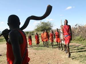 位于马赛马拉国家动物保护区的马赛族是肯尼亚部落的象征,以好战和高傲的特点闻名于世。这次旅行的重头节目之一就是肯尼亚旅游局要带我们去拜访一个传统的马赛村庄以及探访一位老酋长。 这次我们受邀参观的村子叫Oyarata Village:一共有一百二十五人,由五个家庭,四十八间房子组成。马赛族的男人通常会娶十二位妻子,但都必须平均分配时间和财富。现任的老酋长总共有十四位妻子,二十五个小孩。我们刚走到村口,一群盛装的马赛族人早已在那里等候,为我们表演他们的传统舞蹈。