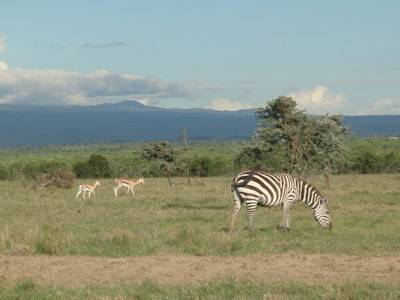 进入肯尼亚山,随处可见的动物群。著名的黑尾牛羚(Blue Wildebeest),长相很奇特,脸上呈蓝青色,外表长得像牛,通常有30多只在一起,也叫角马。它们非常热爱大草原,习惯每天喝水,长期为了寻找更好的觅食地点而迁徙。因为有了这种需求,就有了马赛马拉巡回迁徙。 在东非每年的7至10月是食草动物们大迁徙的季节。200多万只的黑尾牛羚(角马)和50多万只的斑马及数千头小羚羊会从坦桑尼亚的Serengeti迁移到北部的Masai Mara 和Amboseli,寻找其赖以生存的丰草和水源。大群的角马和斑马渡过马拉河,河水里有鳄鱼偷袭,岸边有狮子和猎豹守侯,弱肉强食,让人叹为观止。直到10月份,整个草食动物又成群结队地开始南移。这种自然界的生态奇观,只有在肯尼亚才能看到。