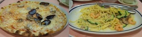 回到旅店附近已经10点了,找到网上大家推荐的那家华人Pizza店,真的是好吃又便宜呢...店里有位很健谈的女孩一直陪我们聊天,还特意给我们切了大大的一块千层饼,超级好吃呢...还有我最爱的奶油蘑菇意面...好幸福啊...  (很好吃,真的很好吃)