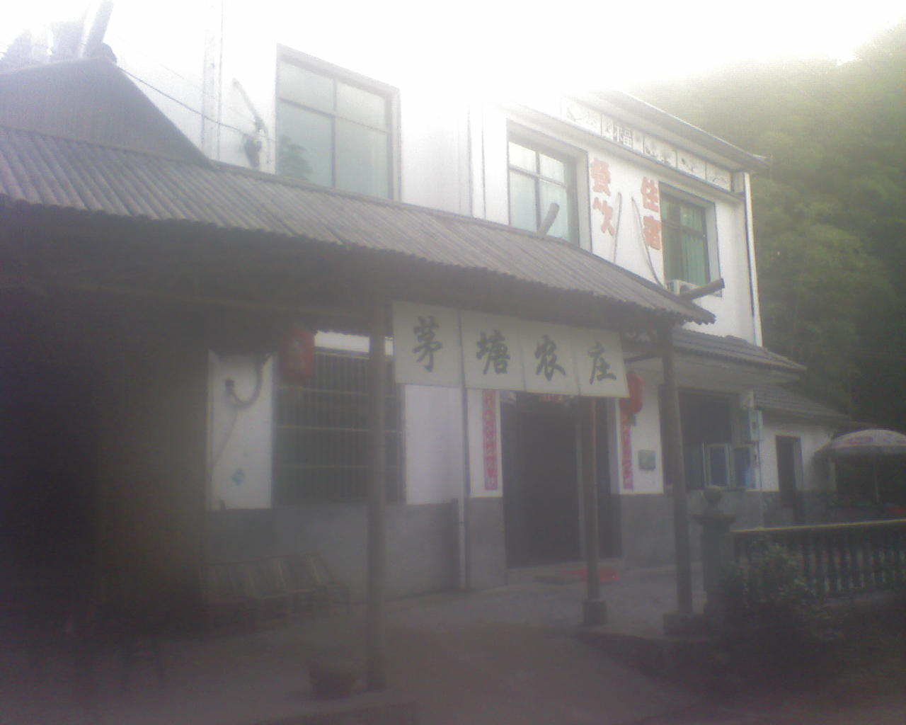 (茅塘) " 茅塘农庄 " 位于山沟沟茅塘景区入口,宛如一颗荡漾在绿竹海深处的明珠,它是一栋三层别墅,旁边有一个很大的停车场,但没有其它人家,于是显得格外幽静闲适.在四季长绿的竹子的环抱中,仿佛我是陶潜,不,比陶潜还要"采菊懂篱下,悠然见南山"得多!这种惬意,我腹中仅有的几滴墨水实不能写出几分来! 老板娘名叫沈桂香,是个美丽淳朴的农村妇女(她乌黑的头发最叫我羡慕,据说这都是当地山泉水的功劳!).我们在老板娘的带领下参观并大致了解了"茅塘农庄"的规模:有10个标准间(其中卫生间`浴室`空调`电视`电扇等一应俱全,并且24小时供应热水),最多能同时接待26人住宿和100人餐饮,还有卡拉ok`麻将等娱乐设施.老板娘还打算在适当时候扩大"农庄"的规模呢.  (“茅塘农庄”门口)  (茅塘农庄)