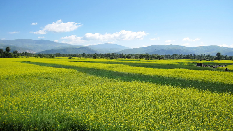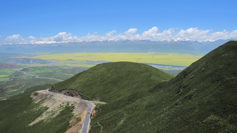 晚餐去了武师傅推荐的王家炒土鸡(不知道名字记得对不对),非常值得推荐,味美价廉,我们吃得非常满意。具体地址不太记得了,不过好像就在西宁宾馆旁边不远。 D3 西宁-门源(海拔2876米) 宿西宁 门源是北方小油菜生产基地,从每年的七月初开始,这里就进入了油菜花盛开的季节,开花时间是7月5日至25日,最佳花期是7月10日至20日。我们到的时候正好是花期最佳的时候。只要天气好,我们一定可以大饱眼福啦! 早起打开窗,看见天边有一抹朝霞,心情顿时大好,今天一定是个好天气。吃完早饭下到大厅,由于武师傅今天要带其他客人去敦煌,给我们换了昨天去坎布拉另一车同行的司机牟师傅(电话13209745554),牟师傅长相憨厚,话不多,但是说出来的话句句实在,在之后的聊天中,我们逐渐了解了他坎坷的生活经历。可能也正是这些坎坷,让他对人对事都表现出与世无争,乐观向上的生活态度。当我们对某些事情(诸如上玛多的高原反应)表示担忧的时候,他跟我们说的最多的一句话就是,“没事,不要恐惧”,他说的时候很淡定,让人觉得上4300米的高原也是很平常,很轻松的一件事情,没有什么好担心的。事实上,确实有很多人的高原反应都是心理因素造成的。从心理上战胜它非常重要。 一路上美景不断,总是有些意外的惊喜: