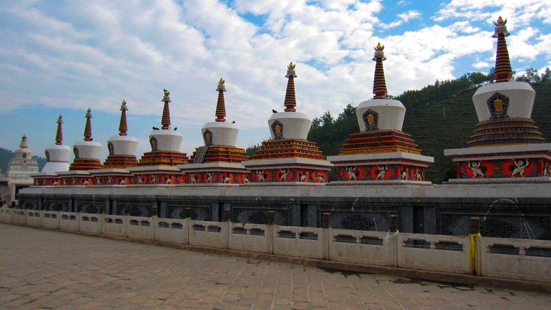 D4 塔尔寺-日月山-倒淌河-青海湖-共和 宿共和(海拔2600) 塔尔寺,又名塔儿寺,得名于大金瓦寺内为纪念黄教创始人宗喀巴而建的大银塔,藏语称为“衮本贤巴林”,意思是:“十万狮子吼佛像的弥勒寺”座落在湟中县鲁沙尔镇西南隅的莲花山坳中,是我国藏传佛教格鲁派(黄教)六大寺院之一,塔尔寺诸佛殿装饰的堆绣、壁画和酥油花,被人们称为艺术“三绝”,其中尤以酥油花最为有名。 到达塔尔寺之前,对于这座闻名中外,在臧传佛教中地位颇高的寺院,我的脑海中勾勒出来的形象是那种大气磅礴,气势恢弘的,但是当塔尔寺突然出现在我的面前时,我有些惊讶,原来塔尔寺并没有我想象中那么的大,应该可以用精致来形容它。虽然我们的游览近乎走马观花,无法真正接近它的灵魂,但是我们幸运的跟在一个藏族导游带领的团队后面,听他生动的讲述宗喀巴的故事,讲述虔诚的教徒磕头满10万次才算是拜了一次佛,带领我们欣赏手艺失传多年的堆绣,1400多年依然保存完整的壁画,和雕刻着不同故事的神秘的酥油花,也深切的感觉到了它的博大与庄严。