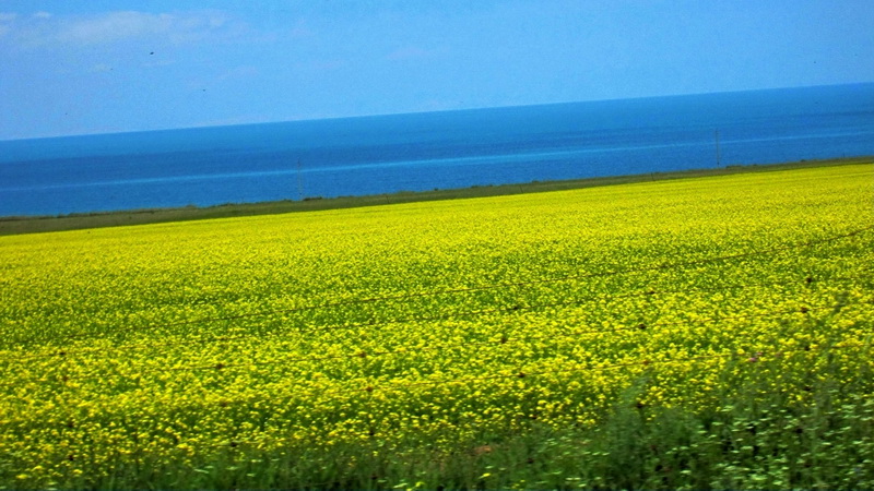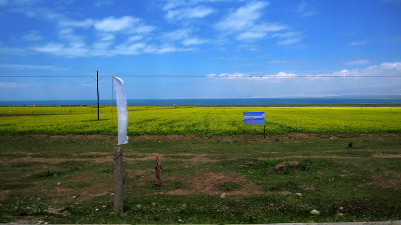 青海湖,海拔3196米,面积4500多平方公里,湖畔芳草萋萋,碧波荡漾,蓝天白云映衬,每年7月下旬至8月上旬,湖畔的油菜花盛开,金黄一片,蔚为壮观。青海湖古代称为“西海”,又称“鲜水”或“鲜海”。藏语叫做“错温布”,意思是“青色的湖”;蒙古语称它为“库库诺尔”,即“蓝色的海洋”。它是我国第一大内陆湖泊,也是我国最大的咸水湖。 在我的印象中,青海湖是青海最有名的景点了,尤其是在网上看到这些介绍的时候,我对青海湖更加充满着期待与向往。在车开往青海湖的路上,天有些阴沉,当在远处出现一抹蓝色的时候,我们开始兴奋起来,只可惜天色还是不见开的迹象,湖边绽放着大片油菜花,非常的漂亮。让我们迫不及待地想要接近它,可惜当我们走进的时候,少了油菜花的映衬,已经没有远观时的震撼,湖边有很多游客在水中嬉戏,水中已经漂浮着一些垃圾,让人非常的失望。