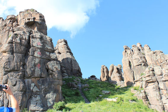 (传说中成吉思汗受哲别一箭,留下鲜血的地方,据说雷雨天气,山峰颜色会变幻成玫瑰色,可惜偶没眼福!)