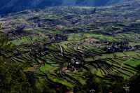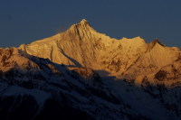 | 首先感谢驴友(爱你在零点),我是看了她的游记后才决定来香格里拉,她非常热心,为我提供了很多宝贵的意见,使我的香格里拉之行充满了感叹和欢喜。还要感谢扎西多杰,我们香格里拉的全程司机,在网上也很有名也是驴友(爱你在零点)介绍的,一个的快乐藏族小伙子, 一米七八的大个子配上阳光的笑容, 带著我们这一路都快乐地欣赏美景…… 以下所写的只是流水帐式的行程,希望能给后来者一些有用的信息。 做了很多准备工作后,终于在女儿放假那天出发了。本来我买好了广州至中甸的南航航班(5折),却在出发前几天通知取消,无任何解释,搞得我们要提前一晚飞昆明。这次旅行我们一家三口的总费用是15000,其中机票占去6800元。 d.1 6月4日下午在吉之岛买了一些美心面包后,坐16:30的佛山汽车站至新白云机场快线,比较塞车,大约18:10到达,坐19:35东航广州至昆明的班机,到达昆明是21:35,拿了行李去离机场100米远的昆明观光酒店(找旅行社预定180元/晚)住宿。 d2 6月5日6:00起床退房,过对面机场坐7:10东航昆明至丽江的航班,大约7:50到达丽江机场。天气不太好,在下雨。8:05坐上扎西多杰的车出发往香格里拉,本来想去石鼓的长江第一湾的,因为下雨没去,11:00在虎跳峡镇路边一间叫木楼阁的小店吃饭。叫了半只土鸡(80元),还有其他一些青菜,共125元,不过不太好吃,特别是土鸡,可能是被店家骗了。天还在下雨,我们先不去虎跳峡了,从小中甸过去香格里拉。 中午13:00路过小中甸,在一处野花盛开的草原旁停车,有藏族老妈来收门票,说是每人3元,给了6元后进去草原内照相,有几个藏族小女孩穿著民族服装约你一起合影,周围有一大片一大片的油菜花、土豆花和格桑花,远处是错落有致的藏式房子,很美,风儿吹过飘来阵阵花香,让人恍惚觉得到了天堂。尽情地拍照……后来天又开始下起了雨,给了那些藏族小姑娘一些钱后,我们恋恋不舍地离开了这片芳草地。大约在14:30,我们到了香格里拉,在独宗克古城停车场,雨下得特别大,我和扎西多杰进去古城看房间,觉得皮匠坡老客栈不错,但离停车场比较远,拖箱不方便进去,后来问扎西多杰天生桥怎么样,他说带我们去看看,觉得好的话就住下可以顺便泡温泉,他家也在天生桥附近,可以带我们去看看,风景很美的。 天生桥离香格里拉县城12公里,是一个天然地热公园,房间是按三星标准建的,设施很好,就是房价比较高,标准房要580元(包泡温泉、桑拿之类的),我们后来讲到400元,住下了。 开好房间后扎西多杰带我们去他家,其实是他姐姐家,。这是一个叫大宝寺的地方,村路比较烂,下雨就更加泥泞。左转右转,经过一个木材加工点,扎西多杰告诉我们是他的姐夫在经营。最后车停在一幢三层楼高藏式房子前,扎西多杰姐姐背著孙子在门口等著我们。走进宽敞的院子,一匹黑色的藏獒见到我们就大声地吼叫起来。从很陡的楼梯上了二楼,客厅很大,窗子刻满雕花,一个大火炉雄雄燃烧著。扎西多杰让我们一家坐在炉边,拿出奶酪、青稞面、水汽粑粑等,他姐姐在旁边打起了酥油茶。我觉得炒过的青稞面很香,闻起来很象芝麻,用小勺舀著吃的,后来又学扎西多杰的样子,在青稞面里放些酥油茶,揉成一团后成了青稞粑粑,就著奶酪一起吃,能接受的会觉得味道不错!我们一边拍照一边吃东西,女儿发现了一群小猫,忙著喂小猫去了。呵呵,可能我们这样才是最正宗的藏民家访吧。告辞的时候我们给了一百元表示感谢。 出了扎西多杰姐姐家,扎西多杰带我们爬上旁边的一座小山,叫宛那山,山上开满了鲜花。扎西多杰摘了几朵喇叭花放在嘴里吹,引得女儿也学他的样子一边走一边摘喇叭花吹,竟然也不喊累了。到了山顶,满眼尽是田原美景──绿色的青稞地,黄色的油菜花,彩色的土豆花,一排排的篱笆,一幢幢漂亮的藏式房子点缀其间,比起著名的新疆禾木村也毫不逊色呀。 回到天生桥酒店已经下午6点多了,穿上房间的浴衣去泡温泉。温泉水是纯天然的,水温比较高,室外的大游泳池也有41℃,因为不是硫磺温泉,没有臭鸡蛋味,水质滑滑的,就是池底比较多青苔状物体,踩上去有点不舒服。后来我们开了一间小房间另外泡,又去了山洞里蒸桑拿(就是蒸汽浴)。泡完温泉,在酒店房间开著浴霸洗澡,很暖和很舒服,9点多就睡大觉了。一晚上听见外面的雨声不断,很担心明天的行程呢。 d3:6月6日 早上7点多起床,当时外面还是乌云密布,打开阳台门,哗,好冷!用温度计一量,才11.2℃,把所有厚点的衣服都穿上,还是觉得很冷。 8点多天开始露出了光亮,渐渐地蓝天也出现了,真是太好了,我和女儿击掌欢呼!退了房,我们上去天生桥看风景等著扎西多杰。 9点多一点,我们坐上扎西多杰的车,今天去梅里雪山。先进中甸县城吃早攴,路边一间小店的米线和饵丝,味道一般,共吃了20元,旁边水果摊买了2斤李子,5元。出发前还买了一瓶氧气,开价40元最后35元成交。 大概10点20从香格里拉县城出发,出城没多远,翻上一个小山坡,就看到一大片草原和海子,扎西多杰告诉我们那里是纳帕海,停车让我们尽情地照相。 继续往前走,有一处金沙江大峡谷,扎西多杰不说,在路上还真看不出来,我们爬上去一看,江水汹涌澎湃,被一座山阻挡后,咆哮著拐了一个大弯,象极了怒江的丙中洛,壮观极了! 到奔子栏已经一点多了,在洁圣园吃午饭,干净味道不错,就是比较贵,江鱼150元/斤,点了两条做汤,现杀的土鸡120元/只,要了半