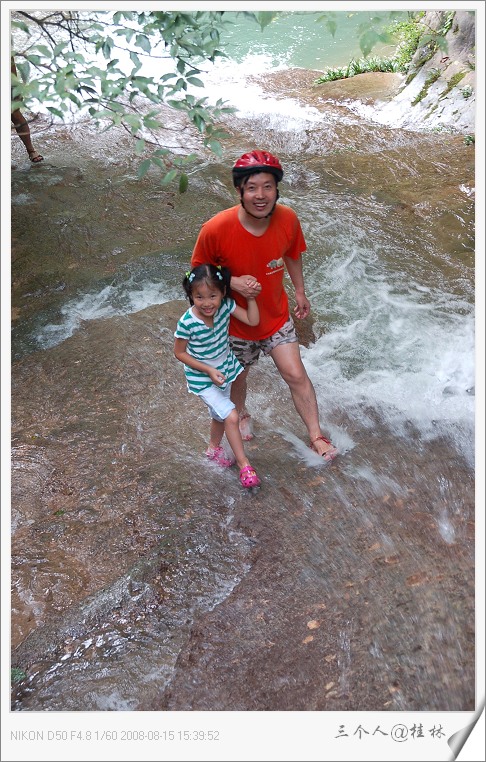 详细图文游记:http://bbs.sh.liba.com/t_33_3087841_1.htm 去年暑假去的,正值奥运期间。 实际行程: 虽然暑期是桂林旺季,但同时也是丰水季,比较适合游玩。而且相比黄金周来说,夏天人还是少了很多,价格也不会像黄金周涨得那么离谱。桂林山水甲天下,在这里,小朋友可以亲近自然,爬山涉水。我们也就有了此次乐山乐水乐满地,总之非常快乐之行。 1. 古东瀑布 夏天去桂林玩水,你可能没想到还可以爬瀑布。进了景区有一小段路,可以坐马车或者竹筏,小朋友一定非常喜欢。第一个和最后一个瀑布比较高,老人小孩不能爬,需要租用专门的草鞋和安全帽,5元。爸爸妈妈可以体验,拉着铁链往上爬,惊险但不危险,很刺激。除此之外接下来的瀑布非常矮,踩着水跟爸爸妈妈牵手走,好玩有趣又锻炼胆量胸襟。 2. 漓江和遇龙河漂流 约了筏工,漂流漓江精华段(杨堤到兴坪),这是漓江最美的一段,九马画山,黄布倒影,20元人民币背面图案,绿箭口香糖广告中的漓江风景,都汇聚在这段。在竹筏上吹着风,玩水枪,看风景,甚至脚也可泡在水里,真是太酷暑中太惬意的事情。 同样的漂流,遇龙河却又是不同的风景,更加安静清幽,没有马达声,只有静静的水流声。背景的山层层叠叠,氤氲出深浅不一的颜色,像水墨画一样漂亮。竹筏更小,感觉亲近自然。另外遇龙河还有一样好玩的东西,就是冲堤坝。一路上的大大小小的落差形成的堤坝,直冲下去,大人孩子都会爱上这样的感觉。 3. 阳朔 带着小朋友可能不能去阳朔泡吧,但阳朔的休闲和西街的热闹也十分吸引人。无论是桂林本地的米粉还是阳朔的啤酒鱼,抑或是各式各样未到正宗的西餐,都让人胃口大开。借上一部双人自行车,带上孩子一起出发,穿梭在美景间。晚上可以去看张艺谋导演的印象刘三姐,以山为背景,水为舞台。周边的景点也非常多,有时间可以去转转。 4. 乐满地 乐满地主题乐园位于兴安,被称为中国的“迪斯尼”。乐园里无比丰富的设施,童话般的设计,各种表演、巡游,让人流连忘返。暑期来这里还有特别惊喜,整个乐园变成了一个水世界。清爽水炮节,狂欢泼水节,梦幻水空间,激情水运动,各种各样的活动彻底冲走闷热,清凉一夏,绝对不能错过。 贴心提示: Ø 夏天去桂林乐山乐水,除了常规的换洗衣服,还切记带上下列物品:1.防晒霜2.太阳镜3.伞(除了挡雨,还能遮太阳)4.防蚊水(记得托运)5.游泳衣6.凉鞋(推荐洞洞鞋方便舒服好看防滑还能随时玩水)7.雨披(去乐满地可带,那里也有卖) Ø 如果去桂林、阳朔、兴安等比较分散的地方,记得精简行李,一个大拉杆箱+随身背包足够了。 Ø 在汽车总站,乘坐去往冠岩的车子可以送到古东瀑布,门票60元/人。 Ø 如果想去景点,桂林和阳朔有很多散客团可以参加,价格便宜不少。比如印象刘三姐、银子岩、古东冠岩一日游等,还有车接送,很方便。 Ø 阳朔客栈非常多,如果不是周末和黄金周,可以不用提前预订,到那里看喜欢的再住,住得多还能讲价。 Ø 漂流可以直接联系筏工,网上可以找到很多口碑好的筏工电话,跳过中间环节,省下不少钱。 Ø 桂林的水枪很有特色,象打气筒一样大,很多景点都有卖,可以给小朋友买一把。 Ø .如果去乐满地,推荐住乐满地酒店。酒店有二大一小的亲子套餐,包括门票、住宿费、早餐、晚餐和免费桑拿等。酒店还有游泳池可以尽情享受夏日清凉。