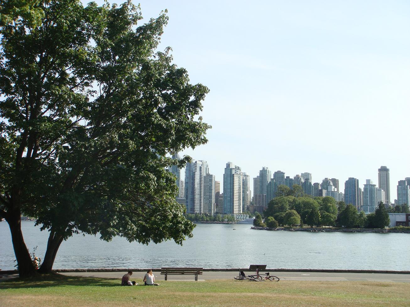 如果在世界各大城市中投票选举最宜居城市,我的票要投给温哥华。喜欢温哥华在加拿大冰天雪地中的温和气候;喜欢她依山傍水的自然环境;喜欢她含蓄内敛的城市风格;尤其喜欢她不急不徐、悠闲自在的日常生活。 今年7月的美国独立日,我们驱车从西雅图来到了温哥华。玩转温哥华,最好的方法是租辆自行车环游斯坦利公园后,再穿街过巷,尽情享受温哥华的温馨、惬意与浪漫。到温哥华的第一天,我们就租自行车逛遍了斯坦利公园。