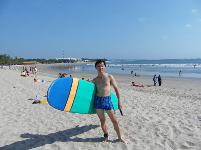 8月6日 星期四 晴 本人至少有5年没有骑过摩托车了,因此刚骑上这辆摩托还有些不适应,前行时有点摇晃,不过几分钟后就差不多适应了,反正靠左边骑就是。一路往北,经过太阳百货左转就到最热闹的库塔海滩,路边有专门的摩托停放处,停好交纳2000RP停车费就OK。我们来库塔海滩的目的就是试试冲浪的感觉,刚到巴厘岛住在蓝点酒店时看到山崖下那些专业冲浪的人摆布着海浪那真叫爽啊,而我之前没有接触过冲浪,所以只能到适合初学者的库塔海滩小试身手。随便找了一家租冲浪板的地方,问了租金,开价100000RP,最后还到50000RP成交(网上有人说可以还到30000RP),时间一个小时。老板在海滩上简单地教了我冲浪的技巧后,我就下海了。真正想在海水里按冲浪的技巧站起来可没那么简单,我试了几次,都失败,而且还被海水直接淹没身体。经过多次努力后,我终于也在海浪上站了起来,第一次在冲浪板上站起来的那种感觉真好。冲浪这项运动真的太耗费体力,我还只玩了半个小时就累得不行,而且我发现还容易受伤,玩下来我的膝盖上增加了几处伤。玩了50分钟后我的左小腿突然抽筋,当时小腿肌肉缩成一块,我好害怕,幸好不在深水区,左脚使劲蹬地就好了。这时也差不多快一个小时,于是上岸还了冲浪板。 海神庙(Tanah Lot)是我们今天最后一站,来巴厘岛之前我已经从其他网友处得知从库塔骑摩托去海神庙可能需要一个小时的时间,所以我们在16:00就从库塔海滩启程前往。由于对去海神庙的路不太了解,我就只能按我脑海里大致的方向走,当我经过塞米雅客(Seminyak)一个路口不确定往哪走时,就咨询路旁店铺人员,之后驶入乡村后就沿着大路走,当有岔路且没有指示牌时就下车问路,一路上都还挺顺利,而且还欣赏到非常漂亮的稻田风光。17:00我们准时到达海神庙景点的门口,这里有个很大的停车场,我把摩托车停好后,一直等着工作人员来收停车费,可是没人过来,于是直接到景点门口去了,另我们没想到的是竟然在这里遇到了8月3日包车司机To Day,今天又有几个中国人包了他的车。 正当我们准备走进景点大门时,被工作人员拦住了,因为我们还没买门票,我还以为就在入口的地方购买呢,于是我们返回景点进车的大门那里购买了门票(10000RP/人),这里的门票是巴厘岛最贵的,不过相比国内的景点,还是太便宜了。刚进景点,就是很长一段路的纪念品商店,我们决定出来后好好看一下,现在先去看景点。走过巴厘岛见得最多的“善恶门”便可以看到大海,左边便是著名的海神庙,我们去的时候已经退潮,游客可以方便地走近它一睹为快,只是普通游客是不允许登上海神庙参观的。在这里我还发现来游览的中国游客特多,我看大约占到所有游客的一半之多,但大部分是跟团的吧。 此时很快就要日落了,我们快步走到进门右边的观景平台,在这时可以往左俯看到海神庙的全景,往右可以看到一个巨大而奇异的礁石,类似桂林的象鼻山,很多游客都在此静静地欣赏着落日,而我们选择了一个最佳的摄影地点观看着日落,那个美啊,只好用相机定格下来!好多游客都感叹日落得太快,大家还在意犹未尽的时候就看不到太阳了。 日落后,天空也逐渐暗淡下来,大批的游客也往景区门外走去,在路边我不经意看到一只很大的蝙蝠,起初以为是个假的,哪知它翅膀一展,足有50厘米长,可见这只蝙蝠有多大,以前没看过这么大的,今天看到觉得挺新鲜。据说海神庙这里的东西挺便宜,于是我和老婆逛了很久,买了质量好的5条沙龙(140000RP)、一套木雕长颈鹿(高矮3个,40000RP)、镶珠化妆盒6个(40000RP)、镶珠钱包6个(90000RP)、工艺猫5个(30000RP),可能价格不是最低的,但我们实在是没办法还下价了,能接受就行,呵呵! 走出景点大门,发现我的摩托车已经是孤伶伶地停在那里,我一直害怕头盔被盗的事也没发生。这时的天空已经完全黑下来,我骑着摩托行驶在巴厘岛的乡村道路上,都感觉有点凉意。偏偏就在这个时候,摩托车的油表指针已经快到红线了,幸好过来的时候我已经留意了沿途的加油站位置,我相信能够坚持回到那个加油站,所以没有在去的路上加油,但是现在感觉油表指针往左移动得比较快,害得我一路上总对着摩托念着“你要争气,撑到加油站啊”,好在摩托听话,硬是撑到了加油站。巴厘岛的汽油很便宜,才4500RP/升,我这小型摩托把油加满了才花了8900RP,折合人民币6块多。我们在圆月及满天星星的陪伴下,于20:30回到库塔,由于整天的味口都不怎么好,我们决定今晚就以杯面、饮料打发,回到酒店,餐厅有歌手演唱欧美歌曲,挺好的。很晚我们还在房间里回味着一天的库塔摩托骑行经历,感觉太棒啦。房间里的电视有中文电影台,终于不用天天听烦人的印尼语了,可就在看电视时,我突然发现房间的墙壁上有一只壁虎爬来爬去,告诉老婆后把她给吓了一跳,不过后来没有再出现。 相关博文: 2009年巴厘岛度假之旅行程(正式版) 2009年巴厘岛度假之旅(准备篇) 2009年巴厘岛度假游-出发篇 2009年巴厘岛度假游(Day 2009年巴厘岛度假游(Day 2009年巴厘岛度假游(Day 2009年巴厘岛度假游(Day 4)-蓝梦岛出海+SPA 2009年巴厘岛度假游(Day 5)-漂流+裸泳+金巴兰日落 2009年巴厘岛度假游(Day 6)-超棒别墅早餐+库塔订房 更多本次巴厘岛度假信息、攻略、照片和游记请访问我的QQ空间(http://user.qzone.qq.com/590318/)或博客(http://blog.sina.com.cn/hotshow) 巴厘岛自助游QQ交流群:1748195