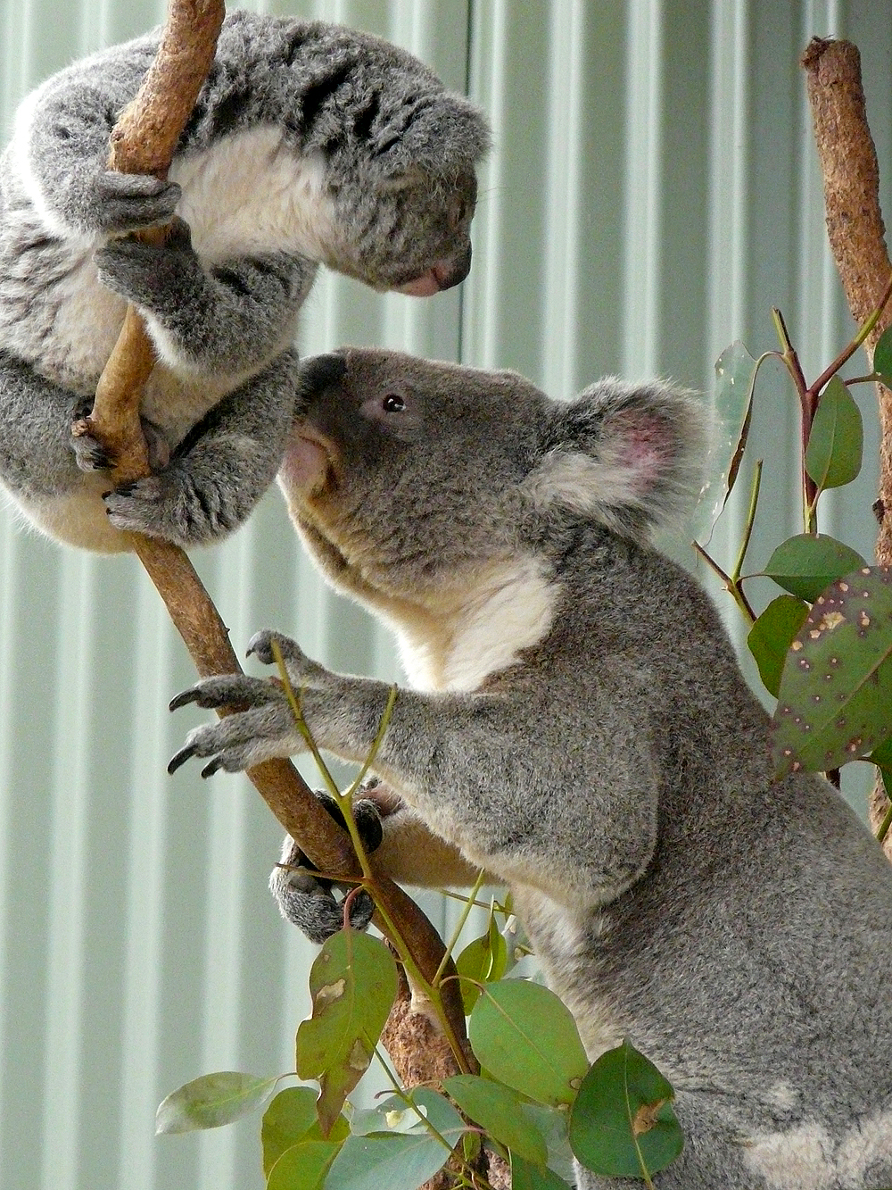 实用TIPS: 1、悉尼野生动物世界的门票是成人31.95澳币,儿童(4-15岁)17.95澳币,2成人+2儿童为85澳币。海洋馆相同。且配合悉尼电视塔、“历险澳洲”动感电影有多种套票。 2、游轮晚宴为188澳币(含自助餐)/人,19点于King St Wharf 5出发,22点返回;午宴为120澳币(含自助餐)/人,12:15于King St Wharf 5出发,14:15点返回。另还有其它各类游程。 3、悉尼歌剧院里巡游时大部分场所都可拍照,但进入歌剧厅、音乐厅时禁止拍照。据导游说,最后排的中间站位和楼上两侧的角落座位是最便宜的,大约60澳币/人。很多人先买左侧的座位看一场,再买右侧的座位看一场,加起来也抵不上中间的好位子的票价。 4、悉尼每周四是发薪日,被称为“SHOPPING DAY”,这天的商场会开到22点,其它日子都是早早就关门了,连周末也只是开到18点而已。 5、澳洲对行车中的安全带要求很严格,无论坐在车上哪个位置,都要时刻系紧安全带。 6、8月的悉尼是在冬季中,日夜都要穿厚外套,特别是在游轮上吹风时和日落后。太阳出来时,只要一件长袖T就可以了。  (悉尼野生动物世界的考拉母子)
