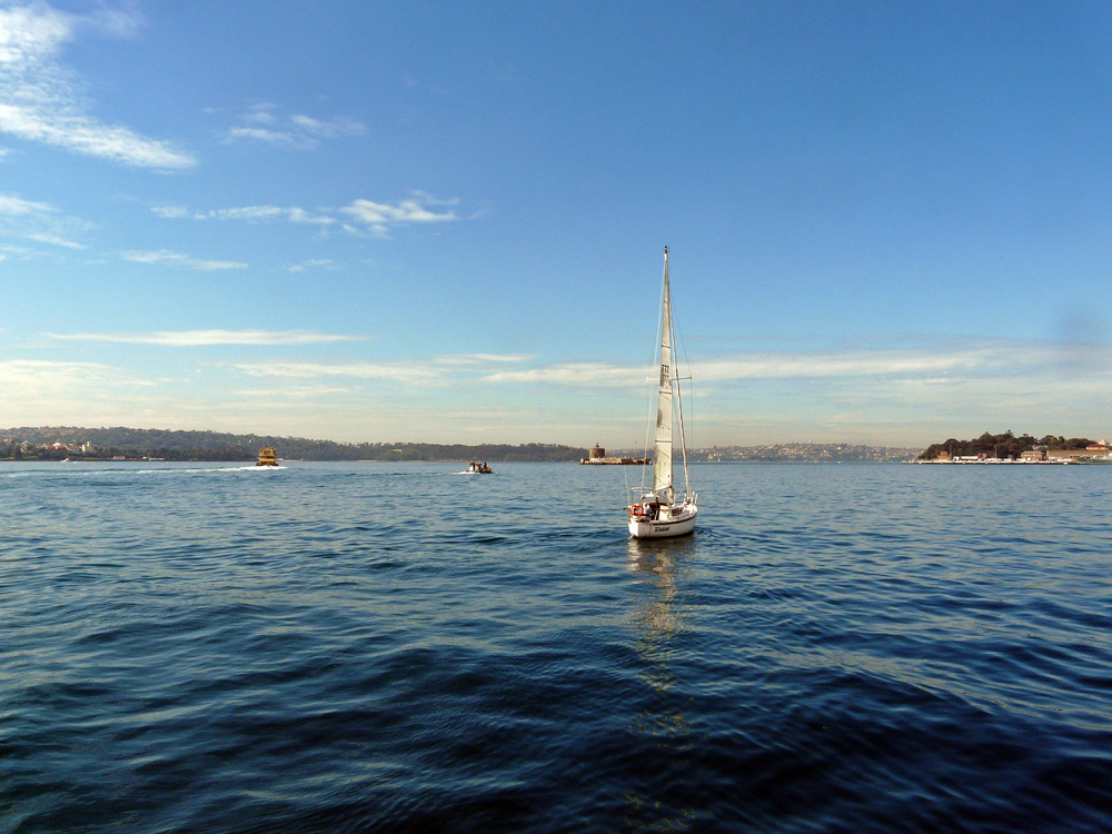 和SARA道别,出了海洋馆,原来阴霾的天突然放晴了,沁人心脾的蓝在天空无际绽放着,举起相机就满是湛蓝的背景,达令港立时充满了阳光活力,美丽极了! 我们一路拍一路步行来到国王码头,SYDNEY SHOWBOATS的销售经理傅小姐已经在码头迎接我们,我们的行程真是步步相连。傅小姐是位真诚率直的武汉姑娘,上了船就叫我们不要客气,赶快去拿吃的。一船几乎坐满了游客,有来自世界各地的旅客们,享受着国际的气氛。坐在游船靠窗的大沙发上,明净的全景玻璃窗外就是深蓝的海水,顿时令人心情放松。看到船头有露天的甲板可以上去,我立刻心痒痒的,但刀叉离不开盘子里的美食,那些生蚝、大虾、扇贝是我的最爱,沾上新鲜的柠檬汁,生滑鲜嫩,让每个人都忍不住拿了一份又一份。 游船开始缓缓行驶在悉尼海湾上,室内的电子屏幕实时地显示着进行中的航线。看着悉尼塔、总理府、皇家植物园、海边别墅一个个从我身边驶过去,我终于忍不住跑到了船头。一开船门,海风“哗”地吹过来,造型独特的悉尼歌剧院正在我的眼前!游船缓缓地在悉尼大桥下穿越过,驶过悉尼歌剧院,海面越来越开阔,海滩、别墅、帆船都在我们身边惊艳划过,游客争相在船头用歌剧院做背景拍照,2小时的航行后船又再返回原码头。据说,如果坐的是晚宴船,船型则更豪华,船上还有热辣的歌舞表演,想象坐着游船看悉尼港夜景也会是种很不错的享受!