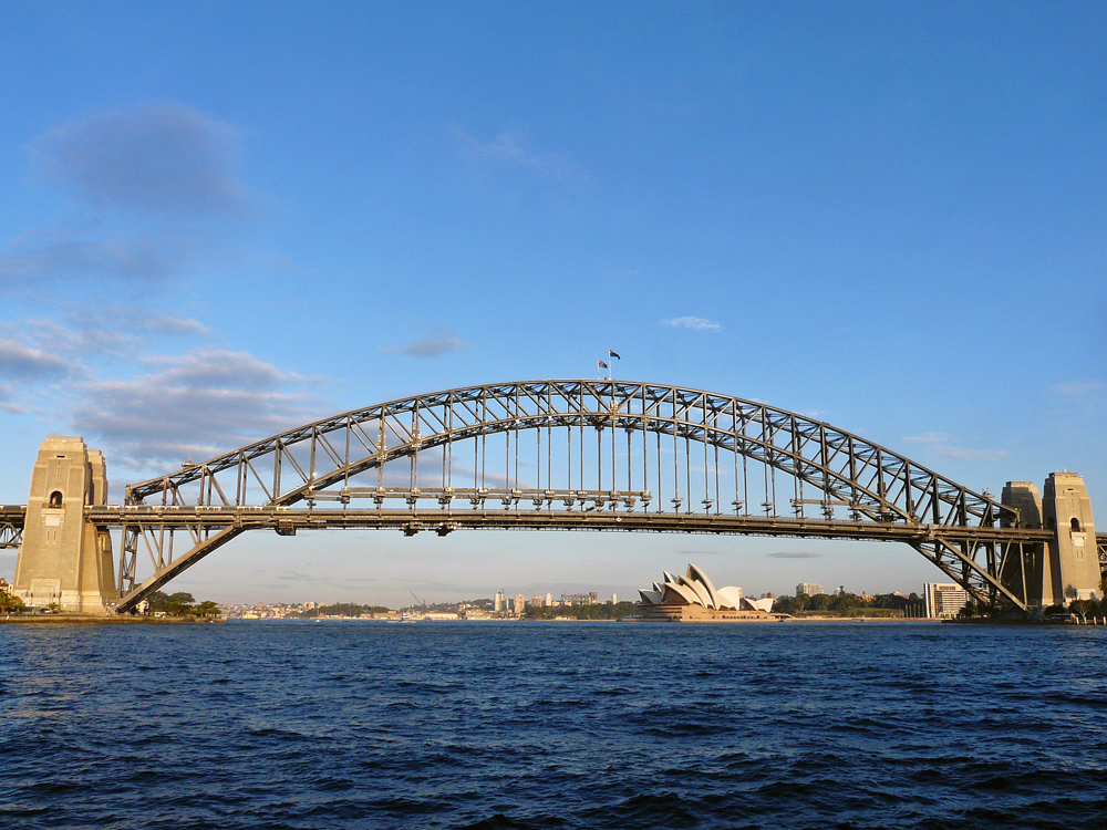 由于我们要拍摄悉尼歌剧院,就在环形码头处下了船。CHARLIE找到一个好角度,开始架起他庞大又复杂的摄影机箱。我和STEVEN也是首次见到他拿出宝贝,十分好奇地看着他摆弄。果然,不一会,引来了5、6个老外,个个手上拿着长枪短炮,一看就是同好,将CHARLIE团团包围在中间,简直已看不见他瘦小的身影了。我和STEVEN开始嚷着要收参观费,一定能小赚一笔,哈哈! 就在STEVEN着急着要赶不上悉尼歌剧院14:45的中文团时,CHARLIE在关键时刻收工了。赶快找到SAM把我们送到歌剧院,中文团已经开始了。临时一刻,CHARLIE突然说你们进去吧,他还是在外面拍照。OK,我们都理解这围敬业的摄影师!于是,我开始怀着神圣的心情跟着中文导游走进了这座传奇的建筑里。不听不知道,原来从地砖、墙壁到扶手、座椅都是大有讲究的!这样一圈半小时讲下来,真的了解了很多歌剧院的细节故事。可惜的是音乐厅因为有演出,我们没能入内参观,只进了歌剧院坐了一会,台上还有工作人员在为晚上的演出布置场景呢! 走出歌剧院,我们四目寻找CHARLIE,我说只要找有没有一群人围着一个人就行了。结果还是CHARLIE背着三角架找到了我们。在SAM的车上,大家讨论着日落的位置和光线,最后SAM把我们带到了大桥下一个僻静的位置,拍大桥的日落。天好极了,金黄的余晖落在大桥上,一丝霞彩飘在天际,我们一直拍到天黑,空气渐渐地冷了下来才心满意足地收工。