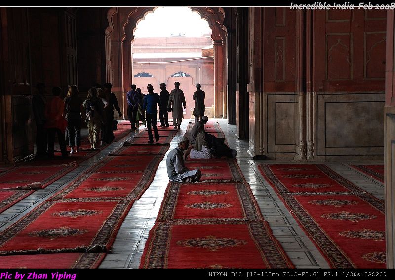 2008年2月23日 New Delhi 很早我们就起床了,出门右转,又去了前一天我们吃午饭的餐厅,其实是在某酒店的一楼大堂里,忘了叫什么名字了,反正在这条街上应该不会错过的,明亮的玻璃橱窗和整洁的布置,早上供应自助早餐,估计这是这条街早餐最好的一家,我们进去时已经没有空位了,经理帮我们安排在两个加拿大籍的印度人拼桌。他们是两兄弟,50多岁了,第一次回到印度旅游,德里是他们的第一站,所以对我们去过的地方,都问的很仔细,打算用一个月的时间进行寻根之旅。由于餐厅的空间不大,我们隔壁一桌是一个华人和2个印度人在吃饭,偶尔听到飘来的声音“上海前几天又下雪了……”原来是个来印度出差的上海人。 我们的TUTU车,刚到红堡门口,就遇到2个熟人,一堆德国的夫妻,他们同我们一辆车从Jaipur到Agra,在Agra的第一个晚上,也在Shanti Lodge吃了闭门羹,然后就住我们隔壁的房间,后来我们在Shanti Lodge的某顿饭也遇到他们,没想到他们也来到了德里,虽然大家都没有聊过天,但是已经脸熟了。旅行者由于得到的资讯来源差不多,导致游走的轨迹大多都是差不多的,我突然有一个想法,就算是自助旅行者,也好像参加了一个旅行团,一个无形的旅行团所带领着,也许这个“旅行团”就是类似lonely planet的旅行指南,他们的编辑就是导游,每本书就是旅行团的小旗子。每个团也会有少许的差别,会有同一个国家或区域的人扎堆的地方,取决在于你拿着那本指南是哪一类人编写的,或是哪个国家编辑写的。 红堡还没有开门,我们等在安检处看“西洋镜”,很多印度学校会组织孩子来此活动,每个学校的校服都各有特色,完全是一场校服的展示show。我们又照列成为孩子们关注的焦点,他们排成队路过我们身边,几乎每个人都同我们打招呼,就好像在接受检阅一样。走进红堡,才发现似曾相似,原来这里就是那个建造泰姬陵的沙贾汗皇帝设计的,而是沿用和仿造了Agra Fort的样子,只是这里用了更多的赭红砂石,比Agra的那个红的更耀眼,同时这里也更大。这里的安检过程也是在整个印度旅行中最复杂的一个地方,据说这里有些敏感的部分2003年前还是在印度军队控制下的。在印度沦为殖民地期间,红堡曾被改建为兵工厂,阿格拉的古堡曾被征用为军营,而泰姬陵则改成了英国青年们娱乐的舞厅。当时英国在印度的总督还制订了一个拆掉泰姬陵拍卖的计划,连施工机械都已经开进了陵园。后来由于在伦敦的第一次拍卖宣告失败,才放弃了这一计划,使泰姬陵有幸得以保存。不敢想象,如果当时真的有人出得起价,我们现在可能得去英国看泰姬陵了。 贾玛清真寺(JAMA Masjid)是我们在印度参观的唯一的一个清真寺,一路上路过很多,Lily说就看最大的就行了,于是这里我们在印度最后一站的最后一天的最后一个参观项目,留给了这座清真寺。清真寺在Red Fort对面的老城里,从门叫了一辆人力车,缓缓的向那里靠近,通往清真寺的老城街道车水马龙,被各种交通工具拥堵的水泄不通,人们的人力车被卡在中间动弹不得,只得“弃车”徒步前往,这里是德里的最著名的旅游胜地,街道两旁开满了高级的旅游纪念品商店,珠宝店地毯点都装饰的奢华,我觉得每一扇门都有很好的隔音效果,因为一进入商店,就与外界的嘈杂隔绝了,你可以在有凉快的商店里,一边喝茶,一边挑选,享受热情的接待。我们就这样挪进了清真寺,整个建筑建在高耸的台阶上。在广场门口就要拖鞋进入,门口有专门的人可以帮忙照看你的鞋子,当然这是需要付费的。走进门的一霎那,看到的偌大的广场,还是让人有震撼的。同事庆幸我们穿了袜子,否则你可能随时会踩在鸟粪上。来印度之前,我只看过新疆的 艾提尕尔清真寺、库车大寺,以及吉隆坡的国家清真寺,伊斯兰的精美建筑一直让我有一种神秘感,让人遐想的外观、令人眩目的布局和迷离的装饰,到底是怎么的脑子才能设计出来? 从清真寺出来,我们剩下的事情就是购物和花掉身边身下的印度卢比。还没有出发前就知道在印度能买到很多精美的异域风情,在德里的各种巴扎里,可以淘到很多价廉物美的首饰、披肩、摆设等纪念品,所以一路上我们都忍着购物的热情,就算在Goa最大的海滩市场里,也没有花半粒子,就怕一路背不动。可是当我和lily站在巨大的巴扎里时,转了一小圈下来,我们却发现自己一样也买不到,原因在于我们都不善于在纷乱嘈杂拥挤的环境中挑选东西,在有限的时间里除了挑选好的质量,还要讨价还价,这些都不是我们的强项,让我们有些郁闷,心想总不能空手而归吧。幸好LP上说在德里有国营的旅游纪念品商店,那里出售的东西绝对保证质量、品质和等级,于是我们立即驱车前往在Connaught place 的Central Cottage Industries Emporium。 Central Cottag果然同介绍上的一样,有舒适宽松的购物环境,摆放整齐的商品,明码标价,还提供完善的打包及托运服务,虽然会比外面的巴扎贵一些,但是这里的质量都是上乘的。一整栋楼都是开放式的摆放商品,我们在这里血拼了2个小时,终于满载而归,心满意足了。 从商店出来,给TUTU车司机看Imperial Hotel(帝王酒店)的名称,开价100卢比,我们一口还价到50,在过去的十几天里我们已经养成任何开价还一半的习惯,虽然知道即使还了一半后,对方还是赚不少,不过对于我们自己来说已经可以接受了。这回我们刚坐上车,TUTU车到前面的红绿灯转了一个U型弯就停下来了,原来Imperial