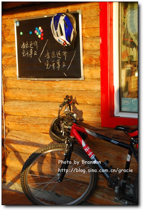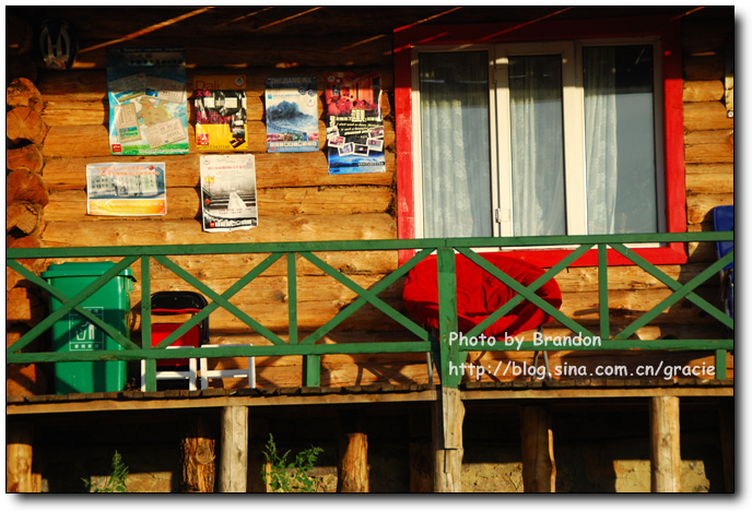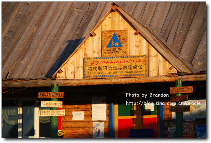 停在白哈巴专辑 http://blog.sina.com.cn/s/blog_5528914d0100evfr.html 阿哈国际青旅,坐落在白哈巴村的山坡上,紧邻哈巴河县方向过来的公路,这一片在06年我们来的时候还只有两户人家,现在已经快盖满了木屋,足有10几户人家了。虽然她的木质结构的房子与村民的木屋外表看起来没什么两样,但是,经过老板两夫妻的精心修饰,营造出来的气氛和味道完美地融合在这个原始的村落里,住在这里,时间仿佛停滞了。你可以整个下午坐在长廊下发呆,你可以躺在舒服的躺椅中望着不远处属于哈萨克斯坦的群山,你可以在充满小资情调的餐吧里边品着各式饮品边听着音乐看书,你可以和素不相识但是同样喜欢赖在这里的人们天南海北地神聊,你可以做你能想到的任何你喜欢的事,就这样停在白哈巴。
