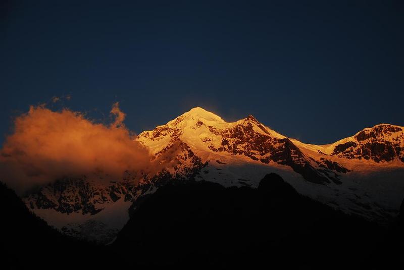 经过第一天的折磨,我们team11人,只剩下3个男生坚持徒步了。 全程 34KM 啊!! 没必要太自虐吧,我选择来回大本营骑螺子 其实那条山路太陡,很多地方没法骑,回来下山的时候更是,骑螺比坐过山车还刺激。 第一次骑螺,心血少,几乎一半的路是放弃骑螺,靠自己双腿比较踏实,哈哈... 低纬度的雪山和冰川、茂密的原始森林、清晰的冰川融水、纯朴的民风 有人说这里就是“消失的地平线” 虽然“香格里拉”一词已被人们滥用于各种场所里,但当我到达这里时,真切地感觉到-- 这里就是我心目中的香格里拉 ! 不得不感谢的人--尼玛,前一晚上8点多,在下雨崩村迷路的时候,幸好遇上路过的他。 后来他很热情耐心地带我们走了一个多小时后才回到客栈 他读过几年小学,普通话说得很好。长得也很帅, 咔咔... 去大本营的时候,居然被我抽签抽到他家的螺子“花骄”,有缘啊~~ 8/21 宿: 奔子澜 苦行第三天,返程 上雨崩村--垭口 / 上坡6KM / 骑螺子 / 大概2小时 垭口--西当温泉 / 下坡12KM / 徒步 / 3小时 深感自己是个幸运儿,在雨崩的两个早上,都看到了传说中的“日照金山” 壮观 !! 当地人说,之前下了一个多星期的雨 好天气跟着我们来了 为了省钱,上山骑螺,下山徒步。别以为下山容易,连续走12公里下坡时候,腿都发软了。 还想着把身体一卷,滚下山来得轻松点 8/22 宿:丽江自由生活驿站 / 标间 / ¥120 / 洗手间、热水、免费网 回到丽江古城,多云,还是没看到玉龙雪山。 听客栈里的其他人说,就前两天天气好点,今天又沉下来了。 碰上好日子到梅里和雨崩,万幸 !!