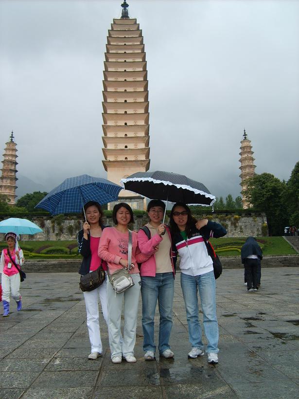 晚上9点多的火车,一车人被导游送到了火车站时,还有近2个小时的等待时间.四人眼明手快,查探四周后,立即步入了火车站附近的"德克士",分别要了东西,于是乎便大包小包,名正言顺开始"耗"起了时间. 四人不得不承认,这段等待的交流时间是非常值得记忆的,聊聊公司的事情,聊聊生活中的琐事,那一刻,似乎我们真正体验到了旅游带来的身心的放松. 9点50分,上了火车. 在此特别补充从昆明到大理火车上的一段过程: (在此简单提及同“房”中出现了一对“外人”----来自江苏的新婚夫妇,而我们的小燕子和小兰子则很快摸清了他们的大概情形----此时我们发现原来攀谈大师就在我们身边) 此次为期近8个小时的卧铺经历,对我来讲也是印象深刻,我们的小燕子居然不露生色地在卧铺上更换了睡衣,真是佩服啊。但个人认为对于小燕子和小兰子来讲,这个经历更是其非常值得纪念的,因为在车上了解到这是她们的第一次坐火车。 火车上半夜睡梦中猛然被异常声音给惊醒,然后就开始听到一个有规律的来自左方位的响亮的让人及其烦躁的打鼾声,在安静的车厢中,显得特别刺耳,这时候一个声音从我的对过中铺传来: “谁去推一推他呀!推下就好了!” “谁去推一推他呀!推下就好了!” 原来几乎整车厢的人都听到了,我们的小燕子忍耐了N 久后终于是忍不住了。最后总算是有人弄醒了他,解放了大家。这位仁兄估计也很痛苦,在此强烈推荐尽快去买“鼾立停”不要再“幸福自己,痛苦他人”了。 原以为小健子根本没有受那位仁兄的影响,第二天早上后才知道,其实她也根本没有睡着,只是没有出声而已。而我们也得知我们的小燕子也一直在发挥她的"侦探"本领,试图来发现是谁在制造噪音,而怀疑对象几乎是跨遍了我们整个的"房间"(但都是错误的),而她几乎整晚都在对选择火车而非汽车这个错误的决定琢磨和后悔。而当她在清晨刚有强烈的睡意时,却被告知火车很快就要到站,确实够郁闷的,而这也害得她一下子从生龙活虎的状态变成了被霜打过的茄子,不过在之后拍照的表现中她则是充分克服了这点。这个精神可值得我们大家学习啊,哈哈。 5月18日(星期日), 火车于早上6点30分左右准时到达了大理,顺着人流缓慢步出车站.在看到N个"接人"导游后,总算在最后一个密密麻麻的A3大小纸张中看到了我们四人的名单,立马有种找到了组织的感觉.意外的是,同时有几个是我们在昆明时的团友,此次仍然是我们的团友.(这让我立即想起了那个可怜,孤独的刘姓阿鹏哥)同时,在这时,我们此次出游活动中,比较重要的"外人",即在火车上认识的,我们四人基本公认的小帅哥和小胖子隆重登场了. 同时,我们也遇到了此次第一个少数民族导游: 姓名(暂遗忘,似乎是姓"杨",但小燕子居然误导我是姓"安"?天知道她是怎么听的?)男性,白族,年龄(属猴的),一开始都觉得他长得特别面熟,但总说不上来,最后总算是被我一语道破大家的困惑,他不就是年轻时的"元彪"嘛!真的是特别相像啊,只不过他更狠:人家大明星元彬脸上只有一颗痔,他小子居然两边脸各一颗,有得一拼啊!可惜了,觉得他相对第一个在昆明的导游来讲,人还是实在些的,虽然也有带我们安排购物的行程,但至少人家还没有脸厚得如同我们公司产品壳体的厚度那样(常规是12mm左右厚的Q235B碳钢),没有说出不购物就不会带来他对我们的尊重这种话.就我本人来讲,对他印象比较深刻的场面主要是在大理一个餐馆中吃饭时,等待N久,饭店也许是由于生意过多而忙不过来,所以迟迟未给我们上菜,这下可惹恼了我们的杨导,对着饭店的工作人员立马用当地的语言开口大骂(其实听不懂是否是在骂人,但凭感觉+结合当时的场合应该是没错),同时开始亲自给我们上菜.但说实话,就他发怒骂人时真的是没有办法让人害怕,反正我和小燕子交流下来是感觉不到他的骂人有什么威严,反而真的是觉得他好可爱,哈哈,现在回想起来还是很有种想要笑出声来的感觉.总而言之,我想我们四人对他印象都还是不错的.只可惜,我们三个相机中居然没有一张是他的照片,只能说是非常遗憾了. 大理之行,无非是参观了"大理古城""三塔崇圣寺","蝴蝶泉"和"游洱海",总之是"古城"就是徒步沿着长长的估计几百米的街道来回行走了一遍,由于导游事先给打了预防,防止买到假的银饰品等,因此也没有进行购物.但倒是品尝了下用牛奶做成的小吃,幸亏4人先买了1个作尝试,结果可想而知了,酸汲汲的,我们没有一个人能欣赏得了。