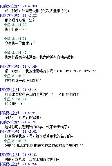 此人别名“木子”,阳朔人。自称本名叫廖家传,是个20几岁的男孩! QQ号码1213799243 QQ名为“阳朔欢迎您”此人还在携程给自己写了篇文章。大家别上当。 以下是我临行前我和骗子的聊天记录 |