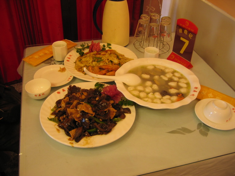 正如网上的前辈所说的,这栈桥不去后悔,去了更后悔,一点没错,所有的海边风景,栈桥这里是最差的了,人多,海滩也脏,我们兜了一圈便走了。 午饭我们是在浙江路的一家名不见经传得饭店吃的,出乎意料的是,味道很不错,而且菜量大得吓人,浪费了一大半,看来这山东人就是豪爽。