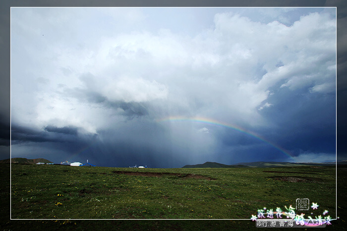 今天真是精彩的一天。 早上 7 点,粱师傅就过来接我,听我赞泉儿头的杂碎汤,很不以为然。二话没说就拉我去了他认为更好的一家小店——兴海路的海山牛杂。小店外观老旧,店面也不大,只有三五个本地人在吃。这里只有上午 6~10 点开店,老板亲自下厨,汤是熬了一晚上的,就在进门处灶上的大锅里,盛出来的时候浓浓的原汁原味,完全不加水,如果有口味清淡的可以和老板说要加水。我们一进去,老板就很热情地端上了杂碎汤和面饼。我掰开面饼喝了一口汤, EN !如果说昨天泉儿头的杂碎汤是清香,那今天这碗汤就是浓香!非常浓郁的肉汤抚摸着我的味蕾,如丝一般滑下喉咙,肉香久久弥漫在鼻端,稠稠的肉汤,软滑的杂碎混合着甘香的面饼,吞着嚼着,真是让人感觉生活充满了阳光。 路上不时可以看见成片的野花,有马先蒿、高山委陵菜、黄芪、雀儿豆、甘遂(狼毒花)、藏波罗花等等,如果我是采药人大概更会笑歪嘴了。 花石峡的山很有特点,有些淡黄色石头寸草不生,其他地方野花一直蔓延到悬崖边,远看山体一片斑斓,大概这就是小镇名字的来由吧! 出镇的时候可以看到很壮观的经幡塔,据说风每次吹过经幡就相当绑经幡的人念一遍经幡上的经文,这么多的经幡不知承载了多少人的念想呢! 过了花石峡不久,我们看到一辆北京的桑塔那和一辆西宁的皮卡停在路边,几个男人在挥手拦车。我们停下一问才知道,原来是那辆桑塔那发动不了,在找懂修车的帮忙,皮卡上的两位司机也没弄明白问题出哪了。梁师傅下车帮他们看了一下,然后我们试着推车发动,在推动的时候车底滚出一个零件,经过他们研究,原来是这个零件被震裂了,车子没法开了,这里也没办法修理,只有回海南洲或西宁修。我们很无语地看着小桑的主人——那对北京的自驾游夫妇,返回的路有近 400 公里啊,他们也很沮丧,最后我们帮他们拦了一辆回海南洲的卡车把他们连人带车一起拉回海南洲。看来小桑虽然强悍,但跑长途跑高原还是不太合适啊! 越靠近达日路边的河流越多,大概是前几天一直下雨,河水都比较急湍和浑黄。一路上小溪小河纵横交织,绿茵茵的草原上还散布着星星点点的小水洼,让人不禁感叹,果洛洲的水草丰美。 傍晚,我们很幸运地看到了彩虹,彩虹下的牛羊、草原、帐篷、水面上的彩虹倒影,与天空千姿百态的云团和反射光柱构成一幅幅奇美的画卷。