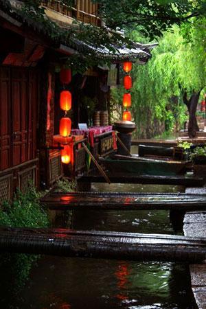 在丽江开始流光溢彩丰姿绰约的时候我们到达了古城,入住木府附近的自由生活驿站,一个典型的纳西小院。晚餐在木府附近的农家饭庄,菜品有形有色,就是味道一般。好在推开窗子就见小桥流水,怡人的夜色弥补了晚餐的缺憾。