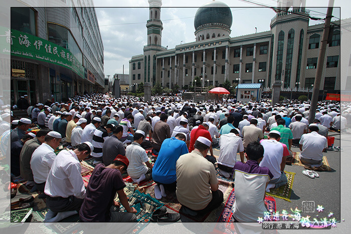 早上睡到自然醒,因为是晚上的飞机,所以今天白天打算去看看穆斯林们朝拜清真寺的场面,据说相当壮观。 早餐后先去青百超市又买了些雪山牌牛肉干,然后到邮局去把行李和特产都寄回去,只留下相机和镜头背着走。 西宁东关清真寺是中国西北地区著名的四大清真寺之一,位于西宁市东区。据说有 600 年历史,能容纳 10000 人做礼拜。从规模上看东关清真寺虽然比喀什的艾提尕尔清真寺小些,但从正门的气势来讲还是这里更宏大些。其正殿外观建筑风格颇具阿拉伯韵味,礼拜大殿则是中式风格,门楣上还悬挂着兴教建国的匾额,真可谓是东西合璧的典范。 12 点没到就已经有不少戴着白帽的穆斯林在街边等着了,还有不少带着头巾的女孩跟着家里人一起来看礼拜,因为女性是不能参加礼拜的。快到下午 1 点的时候,清真寺周围的穆斯林越来越多,连附近商店门口都站满了人,甚至还有坐着轮椅让家人抬过来的老人家,为了给做礼拜的穆斯林让出地方,街道边的治安大叔和寺里的一些阿訇可着劲地“驱赶”我们这些占道的无关人员。