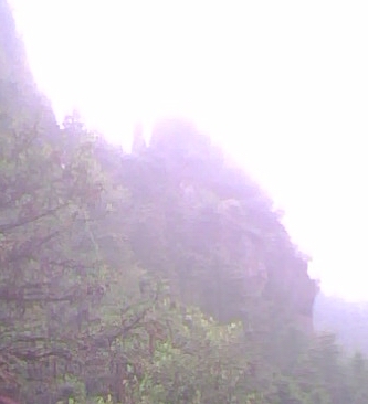 到了山上,我们坐在紫霄峰上看涛生云灭,下午四点钟的太阳照在身上和着山顶的冷风,感觉还是很舒服的。老婆把湿透的内衣换上棉毛衫,还穿上带来的夹克,一身舒服,也不觉得冷了,那些穿着短袖衫的女士很有些人觉得冷的。在山上问了一下,有个云岭宾馆,标准双人间要148元,还有个旅客服务中心,标准三人间要168元,价格不贵。但是,现在有枯水季节,不能吃饭,只有方便面和饼干可以吃。这些还是可以克服的,对我们来说无法克服的是不能洗澡。所以只能非常遗憾下山,据说春夏季可以住的,在那避暑是非常舒服的。哦,山上原来有几家饭店的,但听山下售票员说现在不准在山上开饭店了,山下倒有不少的饭店,很多县城的人也来吃饭。