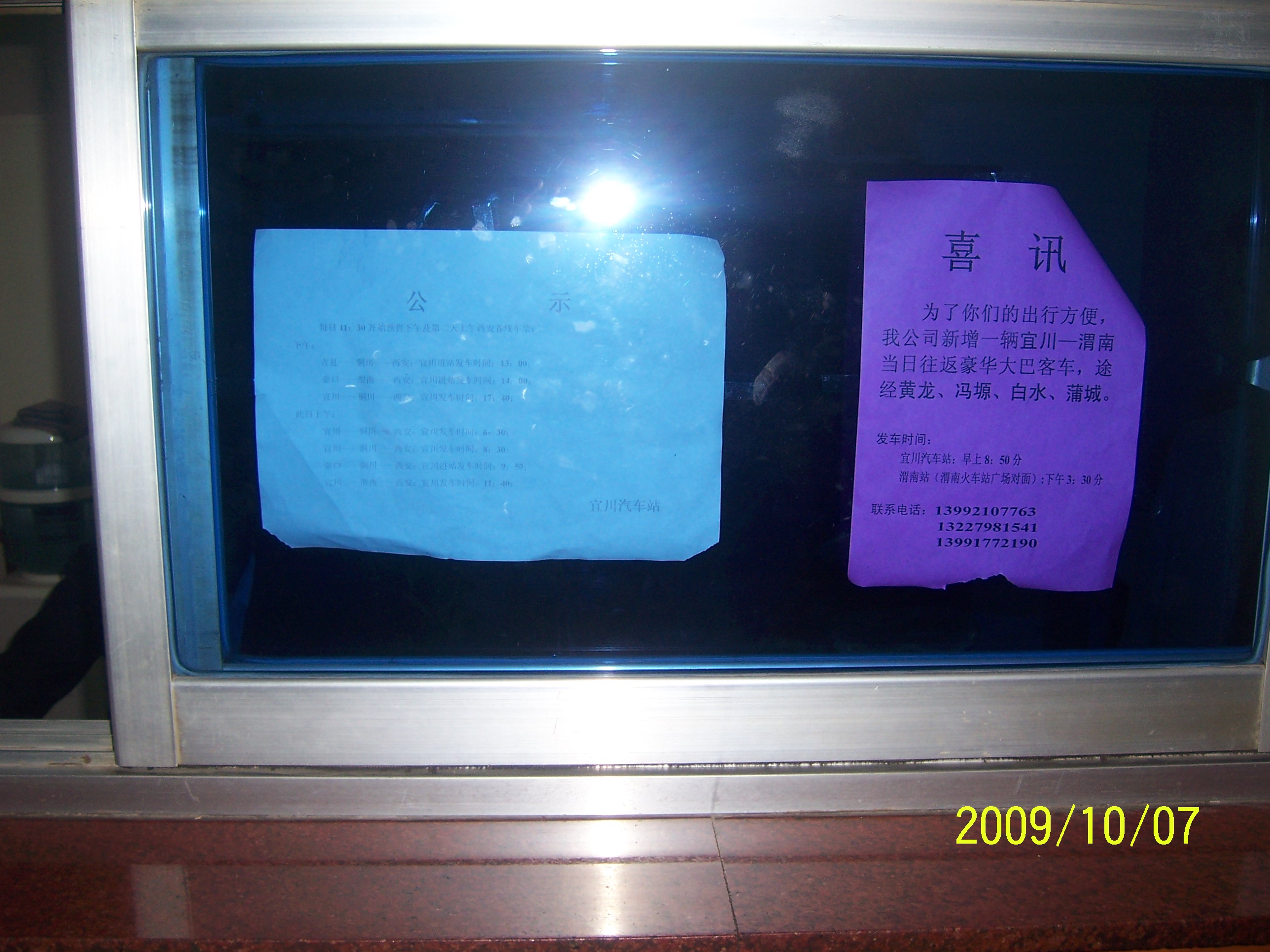 11:30到了壶口,见到了梦寐以求大瀑布,是有一些感动,但是没有想象的壮观,各位看官自己感觉吧.用了一个多小时转完. 从延安到壶口的车下午2,3点左右就返回延安.车上的人一直给我们灌输没有别的车了,回延安是最佳路线,让我们定个座位,实际上就是预先把回程的车票买了. 我们是铁定了不会延安,一到壶口,就看到一辆去宜川的车,很破,路上听司机说,明年就报废了.这个车1点回宜川,真的没有直接回西安的车耶. 去宜川的路好像在修,所以要绕30公里,好像很久都是走在乡间小道上,路旁是成片的苹果树,边走边拉客.车上的人说从宜川到西安的车很多,每小时一趟,我们可以赶3点的, 让我们不要着急.可是当我们到了宜川,大概2:50pm, 只有最后两班卧铺车,分别是5:30pm和5:40pm,而且第二天早上的车票都已经售完了.这时才明白车上的人说的是瞎话,就是给他们路上磨磨蹭蹭拉人找借口而已.旁边的私车老板围过来做生意,一打听,包小车去西安要900,太贵,还有出主意,包车去茶坊,在路口等从延安到西安的车. 幸亏车站的一位老者提醒:延安去西安的车都是满员的,不大可能中途停车上人.售票的工作人员还是蛮耐心的解答各种问题,表扬一下. 不得已,买了5:30的车,88元,不知道为什么是卧铺. 很讨厌这种车,味道让人受不了.加上车老板对抽烟者的纵容,他本人也是烟鬼.车内的空气很差的.路上开的很慢,11点才到西安东站.然后花了80块钱打车回咸阳,到家11:50. 壶口一游,路途艰辛呀. 交通情况比较差,建议包车或跟团,陕西政府应该整合一下运输资源,或者携程能像在三亚的穿梭巴士,解决交通问题,当然了,这个路途比较长,但是运作一下应该有不小收益的.
