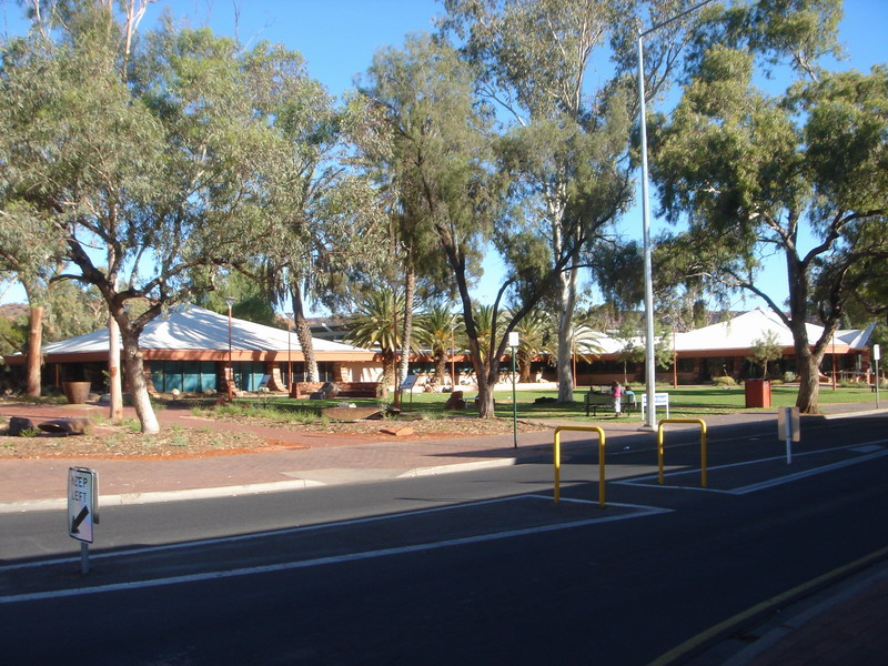 在市区的Todd Mall”的商业步行街上,有一座著名的阿得雷德古宅,Adelaide house museum是爱丽丝泉的主要景点之一,是纪念一位医生,他建造了一座医院,后来改建了博物馆。但可惜那天正碰巧关门,不对游客开放。在旁边的草地上看到不少土著人,在卖他们的土著画,还有不少土著人无所事事,三三两两坐在绿地上抽烟闲聊。他们看上去无忧无虑,但好多人显得衣冠不整,与现代社会形成了明显的反差,生活看上去过得并不怎么样。