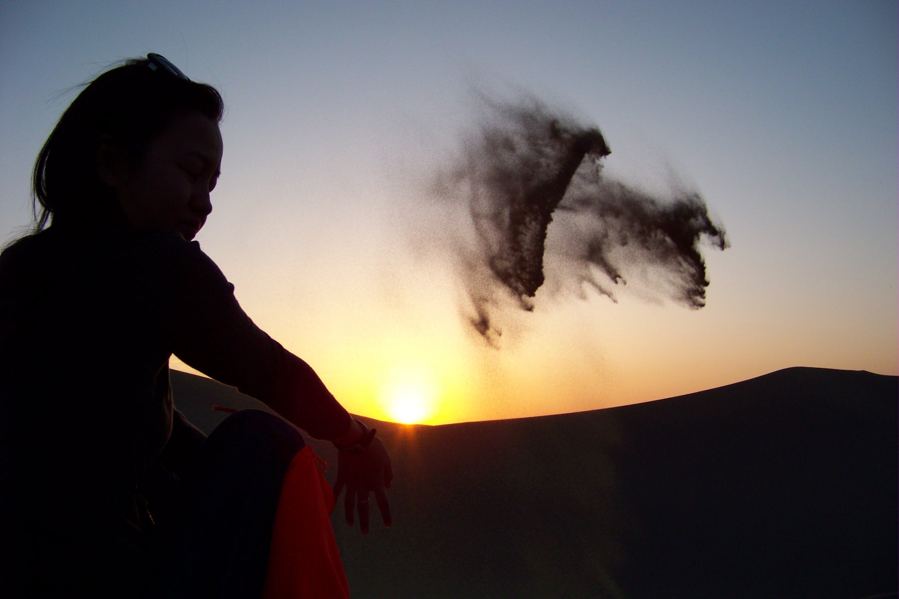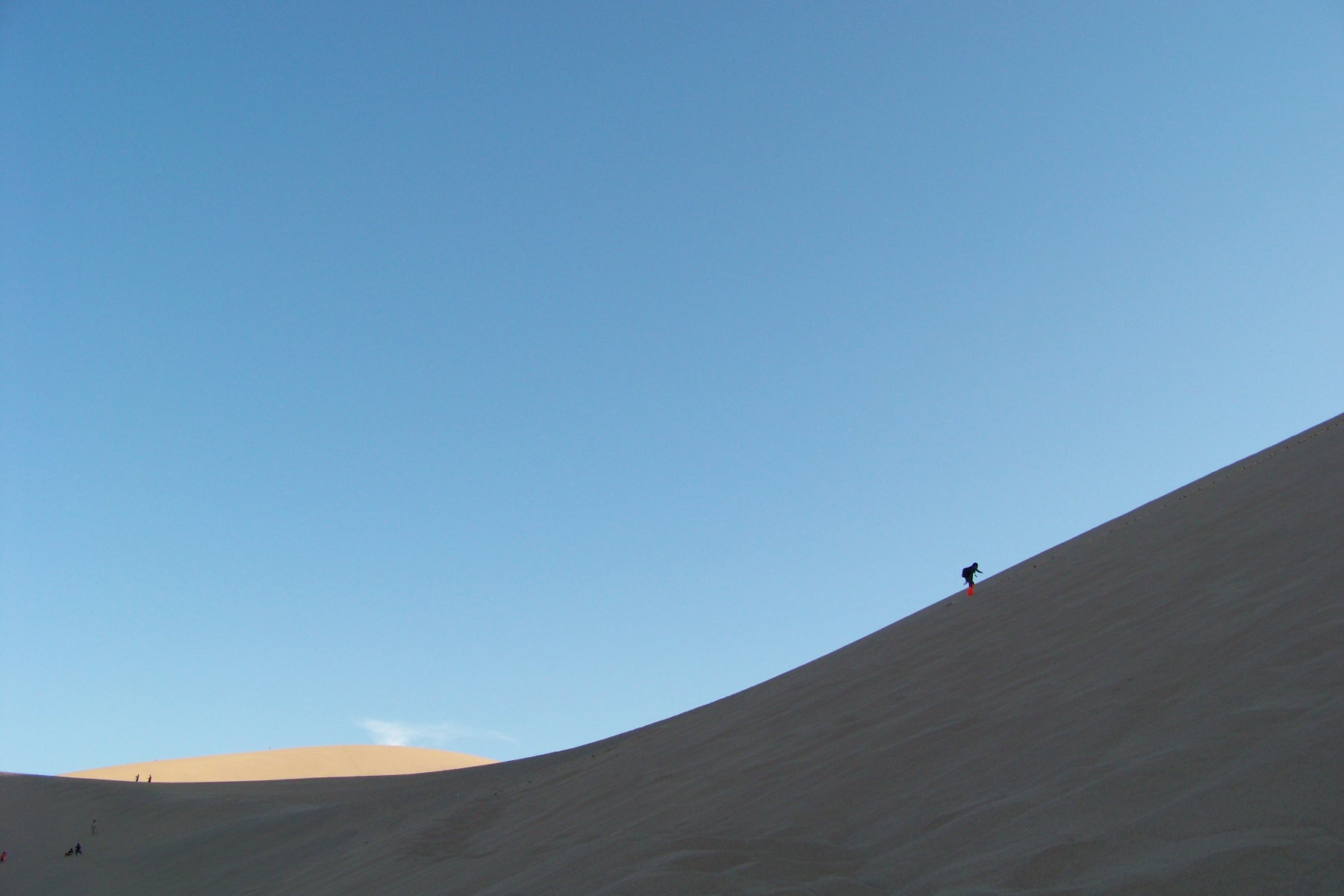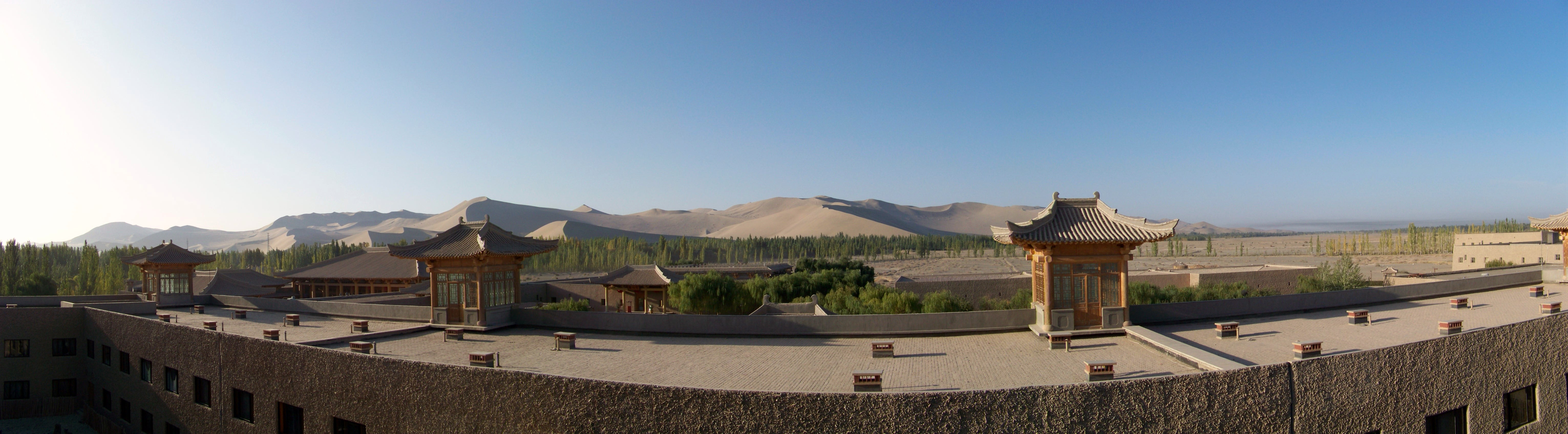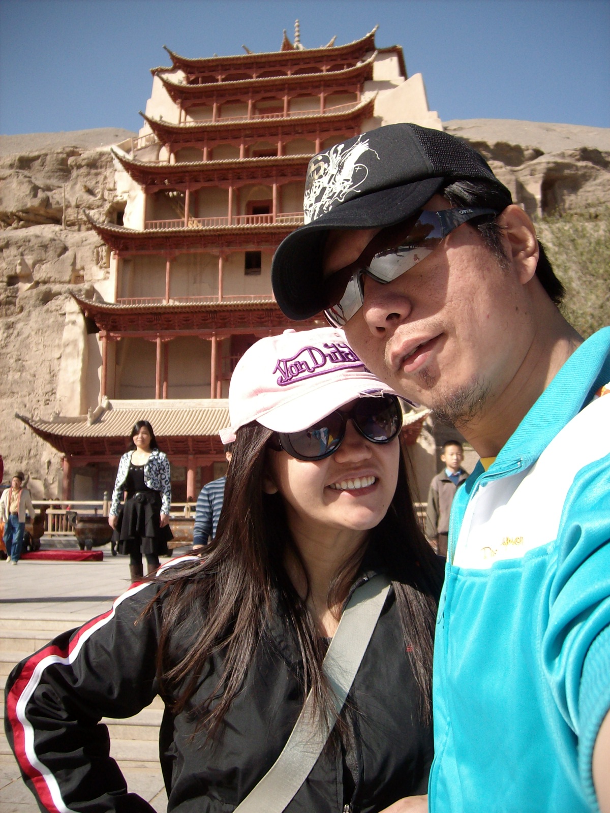2009-10-06 (敦煌---敦煌山庄-莫高窟-鸣沙山-月牙泉) 《山庄空气》 话说虽然每天来回市区-山庄的车费不菲,我们还是很情愿的,山庄的服务不错,虽然副楼280元的房间有点陈旧,也没装潢,但最终折算回来还算值得。 一觉自然醒已经是早上7点半,迫不及待的拉开窗帘,看看早晨的沙漠到底长的啥模样?哇!是蔚蓝的天、刚刚苏醒的黄绿色胡杨木以及曙光照耀下深浅不一的温暖沙漠色! 敦煌山庄俨然是竖立在沙漠山脚下的一座孤堡,平顶,没有屋脊的建筑很有特色,粗糙凹凸不平的外墙,应该是为抵挡风沙而设计的吧! 山庄就像个塞外的世外桃源,深呼吸一口让我们回忆起堪培拉的清新空气和没有污染的蓝天,宁静而舒适的。 坐在4楼露天摘星阁享受着第一份INTERNATIONAL BREAKFAST,出现在这里的人,除了吃早餐,更少不了是前来照相的。清新的空气、微风、温暖的晨光。。。一口早饭一口沙,哈哈,是何等奢侈的贵族享受哦! 自由行,没有团体游的束缚,慢慢享受过这顿早餐后,我俩再次提起相机,进行对山庄的“深度游”。山庄里值得摄像的事物不少,从前台那一大幅丝绸之路英雄彩图、别致的彩灯、木制家具、细腻的雕刻建筑到户外用餐的蒙古包、石质坐凳与灯台、小菊花植物等等。 有别于其他休闲酒店,山庄提供了不一样的塞外休闲风格,不想进城,呆在山庄也可以得到不一样的悠闲假期! ××××××××××××××××××××××× 《艺术敦煌》 我相信大部分的游客都是为敦煌壁画慕名而来的,敦煌人也引以为傲,千百幅油画于墙上的彩色神佛壁画,何其壮观!更可说是世界奇观! 据说之前只开放了10个窟,今年国庆60,我们才有幸的参观了700+个窟里的15个。也听闻做导游的朋友说了,不久的将来,莫高窟将只做选择性的开放! 来莫高窟前,建议大家至少该了解一下他的历史背景,可以和西安媲美,游敦煌也算是历史之旅。我的功课做的不足,好在不同的窟都有颇为专业的讲解员做游客讲解,把每个窟、每种壁画的年代、风格一一讲述。 窟里“收藏”了从1500+年前北魏、唐朝至清朝不同年代的壁画。每幅画都深藏学问,例如盛唐时期壁画人体形态婀娜多姿,栩栩如生,飞天仙女姿态优美、因佛教的传入,佛祖类别增多;有大部分壁画到了清代进行重新修复,很可惜,只能说越帮越忙,进行修复过的壁画形态远不如原来唐代的细致,各方面皆趋向死板,导致艺术价值不高。从而可见,唐代艺术造诣的高超和重视! 窟里也出现了一些奇迹,有一小部分,连现代科学也无法分析出,为何从西周保留至今的壁画颜色仍还保持着原来的不朽鲜艳? 莫高窟当然也经历了如八国联军、民国军阀等等的大量创伤。但从今天国家为文化遗产不遗余力的保护贡献,我希望,我们的子子孙孙在我们百年后也有机会眼见真迹。 个人而言,虽觉得可惜无法带相机入洞,但从保护国家遗产的角度来看,我又尽了点绵力了哦!如果真的对敦煌壁画有兴趣,建议买些敦煌书籍,扑克什么的做纪念,不贵,挺多10-20元。 最后,题外话:旅者如果上网搜索“10月6日某某官阶富太在莫高窟因触摸壁画,刮掌讲解员被免职”的一则新闻成为我们行程的小插曲。。。面目可憎,滥用职权的人还真不少啊。。。 ××××××××××××××××××××××××× 《沙漠之路》 选择在下午4点才到鸣沙山,因为可以看7点半的日落。 徒步进入鸣沙山购票处不远,很偶然的情况下,带来一点节约的机会。。。事因从敦煌到雅丹地质公园选择的确不少,但不便宜,讨论过包车?JOIN TOUR?参加定点车?等等方案,都至少得花一人100+大元。 然而,就在鸣沙山购票处不远处树立着“敦煌市区到雅丹的定点车,路经玉门关、汉长城、西千佛洞等遗址”的红色广告牌,标价70元每人,比我们预先订的120元便宜很多! (剩下的钱可以吃点好的:)想到反正都是自由行,不就是要一辆车嘛!联系了负责人小丁,(后来知道他也是司机兼导游)就决定了。所以再次强调:敦煌就是个成熟的旅游城市,不必担心准备不足,选择多的是! 进入期待中的鸣沙山后,兴奋的原本打算死活一定得坐骆驼,可比较过80元骆驼VS 10元小车的价格,记得:只到入口!!然后再看看长的毛茸茸、长睫毛的可爱骆驼一天载客肯定不少,觉得挺可怜的,就打消坐骆驼的念头了!(我们够鸵鸟吧!:) 真实沙漠的景色比电视上见到的还壮观!见过无数沙滩却是首次见识沙漠,触感很相似,凉凉的,但沙漠更干净些。 我们花了10元租下亮丽橘色的鞋套以避免细沙入鞋,但最后沙子还是进鞋了,因为沙粒实在是太太太太细了!不好说这是不是浪费,橘色的鞋套还是给我们带来意外的摄影收获,因为颜色抢眼,拍摄出来的照片挺有味道的!! 看似不太高的沙丘,以为攀登不费力,其实不然,双脚是重复不断的在沙堆里踩了陷、陷了踩。没想到竟费了大约2小时才登上第一个沙峰,而且不是最顶峰,就已经精疲力尽。我们算是“走马看花”型,爬了停,停了拍,拍了喝(喝了当地的杏皮茶,酸酸甜甜挺好喝的),再继续爬。后来听说,爬沙山还有窍门,斜着攀登会比笔直登来的轻松哦!下回试试! 虽然没爬到最顶处,但已经很自豪,站在高高的沙丘上看夕阳西下很是浪漫,有一种拥抱大地的快感!我们选择了最佳的观日位置,等待捕捉太阳低坠的瞬间一幕,间中拍了一大堆艺术照,微风、落日和自己的剪影,别有一番韵味! 随着北极星的出现,气温也变低了,我俩手着挽手一步步的走下山。今天还是
