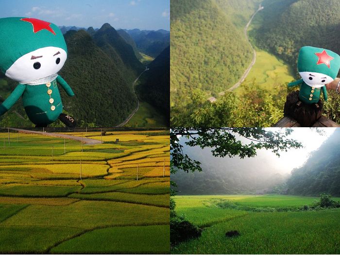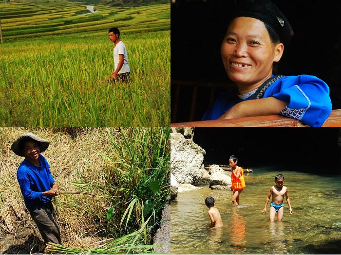 D8 09.8.28 (五) 荔波-----茂兰-----荔波 6点出门,早点摊还没开,老板娘帮我们砸开了对面米粉摊的门,6:30吃完上路。 关于逃票: 一路的打听着,终于来到了茂兰森林公园大门。看着别的车都呼啸而过,就我们傻傻的下车找熟睡的管理员交费,当我们反映过来,已经晚了,管理员已经起来准备给我们开票收钱了,我催着大家上车,让杨老师开车溜,唉,无奈杨老师痛斥我们逃票的行为,就是不走,最后我们是被管理员追到石上森林补的票。 行: 杨老师到茂兰后说什么也不走了,说是要回去开校长会议,一共8个老师的学校,我们也没法挽留,只是他突然离开,打乱了我们后两天的计划,我们一共给他结了740元的车费,每人100,老实说这钱不多,他如果还不认回家路的话,又走错路,可能都不够回家的。 摆脱了不靠谱的杨老师,我们也轻松多了,让管理员找了一个当地的面包车,280元,导游加车费,玩一天。 西江--荔波--茂兰 100每人 茂兰导游+车 40每人 游: 茂兰森林公园门票50元,学生25元。 8点多来到石上森林,1小时来回,主要就是爬台阶,路上都是茂密的森林,看不到什么景色,唯一壮观的是走到尽头的观景台,可以鸟瞰整个田园风光,除了太阳太晒、虫子太多、我们真想再呆几小时。这里的虫子很多种,苍蝇、蚊子、疯蚂蚁、蜜蜂、蝴蝶都冲着脸飞,我们实在受不住就下来了。 随司机在五眼桥吃饭(途径董歹,五眼桥俐宏休闲庄15885407704,13385189566),由于正在修路不通车,我们步行了十几分钟,五眼桥有个简单的客栈,能提供食宿,估计我们要是昨晚住茂兰,就是这里了。 饭后徒步去了青龙潭,一路上很美,漫天飞舞的蝴蝶,随时都有的小瀑布,水兰,特别的兰,只是景点太短,走到一半就往回走了。青龙潭不太晒,一路的树阴,非常舒服。 穿洞之行: 我们顶着下午两点的大太阳,往山上洞口爬,都是台阶,一步三歇。半路我们还捡了一个广东男,他一个人已经起到半山腰了,但觉得实在乏味,就往下走,刚好碰上我们,于是又一起结伴走。王西江因为体形庞大,爬的又慢,被向导戏称为猪八戒,我们则腼腆的叫他二师兄。 二师兄在到达黑洞洞口的时刻止步了,他看到我们都没带手电,要勇闯黑洞,就撤了。说实话我们也怕,不过好在人多,大家一起去,可以壮胆。只见向导先第一个消失在黑洞深处,接着是LM,我们都身处黑暗了,相隔很近,互相呼喊着,听着声音,蹭着往前走;后来我想到鬼吹灯的情节,就用相机的闪光灯照亮,此法不错,就是需要不断调节相机,有一下没一下的;照亮后依然不敢看四周,只照脚下的路;忽然听到右侧一声怪响,是野兽的叫声,之后就是姐妺们的惊叫声,过了一会向导才说,别怕,是头牛!原来这牛来洞里喝水,洞里回声特大,把它的叫声都变形了,其实牛看到我们更害怕。经过这么一吓,大家胆子都放开了,光线也渐渐进来了。 出了黑洞,我们来到神仙洞,这里门口挂着红色布条,还有祭祀的酒水,看来神仙洞在当地人心中是很灵的。从神仙洞出来,我们最后去了九洞天,此洞有九个类似天窗似的小洞,所以这洞的光线还不错。 后来去了拉滩瀑布、水上森林都很一般,倒是从茂兰回荔波的一路上,田园上的落日,特别美。 晚上回来后大家就散伙了,一天的结伴旅行告终。 我俩去汽车站,查看明天的路线。 吃: 晚饭我和LM吃的酸辣烫,街边吃的,锅底5元每人,蔬菜每人2元随便点,我们就要了一盘肉,然后猛吃菜,还有种好吃的花,喝到了无比清纯的茅台啤酒。 住: 五眼桥俐宏休闲庄15885407704,13385189566 同昨天 印象: 茂兰县是个地区,一步一景。 一路的田园风光,麦穗、梯田、割好打困的稻子,每一处美景我们都赞叹,可下一处总有更美的景色。