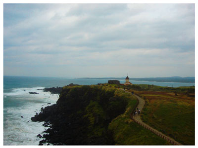 到了涉地可支(又称涉地岬),风力依然不减, 这个本应在白云和阳光的陪伴下缓缓欣赏的地方,我们却是在大风和乌云的伴随下走完的。很冷,在门口的小摊贩处买了关东煮,不美味,似乎1000W两串的样子。 涉地可支曾拍摄过好几部韩剧,有个收门票的所在专门是韩剧方面的内容,不是很感兴趣没去。(这里似乎也是韩国人拍婚纱会选的外景地哦)。反而是路边一个没什么人光顾的小艺术馆为我们留下了非常美好了回忆,这个展馆名为Genius Loci——像名字一样,里面的感觉也是既现代又本土,非常有特色。有趣的是,我在售票处问工作人员:“Is it a art museum?”答:“No. Just IMAGINATION.”参观结束,我理解了他的话。