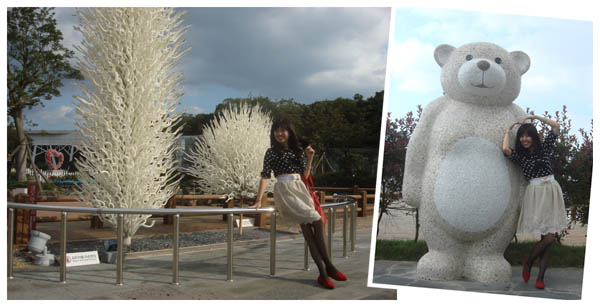 这一篇讲的是我们第三天第四天的行程哦~有好玩的景点呢~~ 第三天是西线的“可爱城市”一日游。绝对都是女孩子的梦想之地! 我曾看过不止一个女孩说“去济州岛就是为了去看泰迪熊博物馆”,泰迪也是我此行绝对不能错过的地方。去看了就知道,真的太可爱了,每一个细节都非常可爱,足以让我的心开心幸福到融化~ 博物馆内的各个展厅,将泰迪熊的历史沿革做出呈现,还将其与不同时期的艺术品、电影、著名人物或历史事件结合起来,看过绝对会忍俊不禁。还专门有一个角落展示了韩剧《宫》的主题,我闺蜜对此剧迷恋不已,我自然也在这里多按几下快门啦~ 馆外有座Teddy家后花园,厉害……比博物馆本身对我的引力更大,总之是个拍照的好地方。  (可爱的泰迪熊,大家看起来都很欢乐嘛~~右下角是大家都很喜欢的韩剧《宫》哦^-^ 右上角是风华绝代的戴安娜王妃的婚礼)