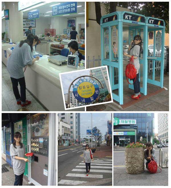 第四天是济州市内的“闲逛”半日游。因为韩币在前三天花的所剩无几,第四天我们本着“不打车”原则,就近在酒店周围闲逛。就这样走走停停地观赏着济州最真实的样子,无意中竟漫步到了有名的“观德亭”和“济州官牧衙”。没买票进去,只是趴在门口往里望了望,没什么特别,很像中国的一些地方。还是无意中看到了济州的邮局,于是进去买了明信片寄到家中……总觉得这样细细地触摸一下旅行中到过的城市,这种回忆比浏览名胜要来的真实。