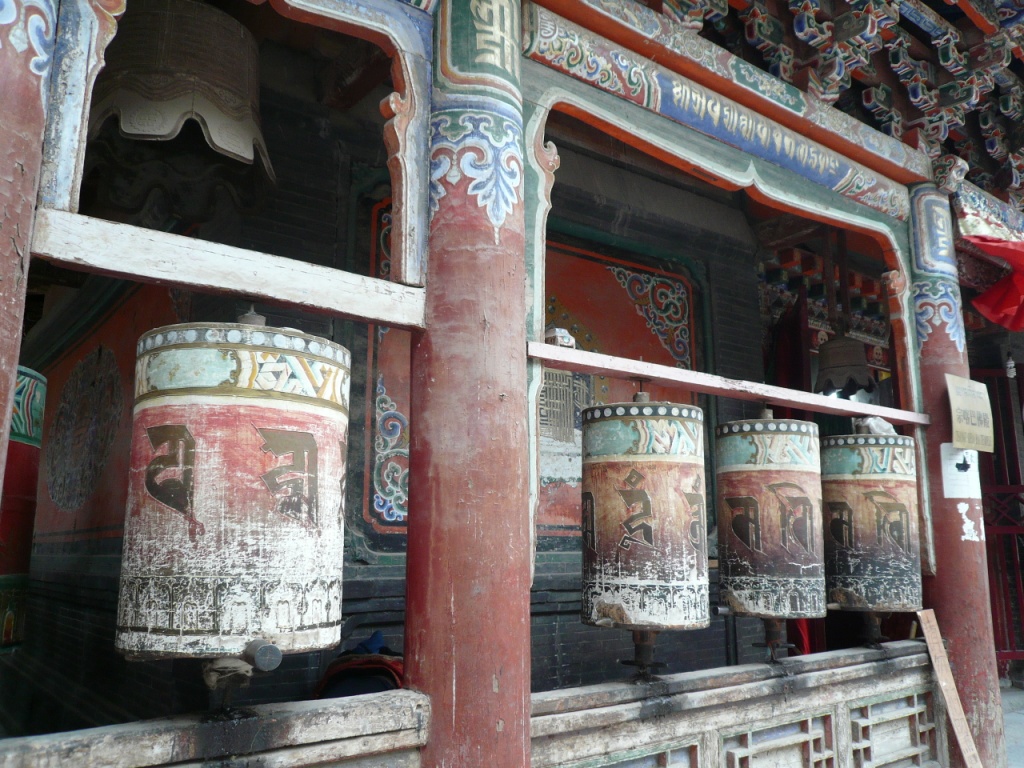 跟随着导游的介绍,我们一路参观了塔尔寺的大小金瓦殿、藏经阁、大经堂、酥油花馆等地,因为寺中规定在大殿内不得拍照,所以很多非常特色的景致不能留下影像。印象比较深的一个是大经堂中挂着的十八罗汉的堆绣佛像,佛像呈立体状,栩栩如生。可惜导游告诉我们现在这种堆绣手艺已经失传,现在的僧人只会平面刺绣了。佛像的眼睛是用珍珠镶嵌、手指甲脚趾甲都是贝母镶嵌,这时X妻感叹一句“都是好值钱的”,与我心里的想法正正不谋而合。