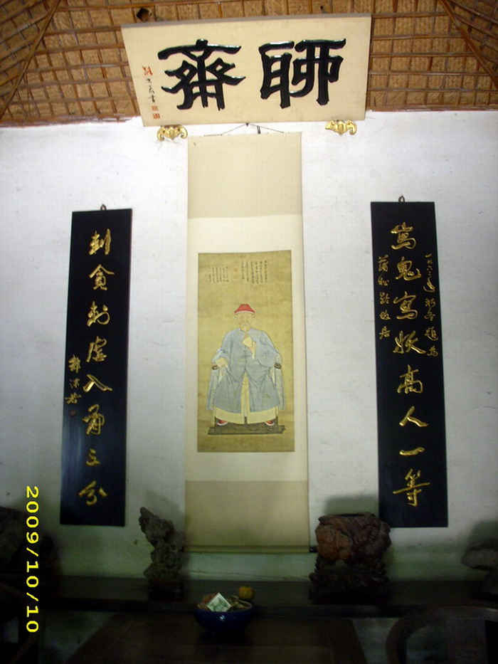 蒲家庄,古巷看醉寒儒 山东人性子直,说话不会拐弯儿,而且还惜字如金。从淄川开往蒲家庄的公共汽车,因为近些年蒲家庄的蒲松龄故居在旅游中升温,所以,车站的站牌由“淄川——蒲家庄”改成了“淄川——蒲松龄故居”,现在干脆省掉了“故居”两个字,直接写成了“淄川——蒲松龄”,车前面挂的牌子也是这样。 上了公共汽车,我说“到蒲松龄故居”,女售票员冲着司机,嘴里只嘣出了五个字:“蒲松龄,有到。”车到站时,售票员又是一声喊:“蒲松龄,到了。”我心里就想,若真的是蒲松龄到了,那一定是一个360岁的天下第一寿星啦。 一座高大的石阙,上面刻着“蒲松龄故里”几个大字。阙里面,是一条宽敞的停车场和商业街,商铺和饭店就像夹道欢迎游客的队伍一样,整齐地列着队左右排开,看得出,这块地方的商气是借了蒲松龄的灵魂才兴旺起来的。 走到商业街的尽头,却是一个古旧的城门。城门内,向东延伸着一条古巷,狭小而又幽长。走在古巷中,听自己的脚步声嚓嚓作响,撞击着几百年的世道轮回,叩打着一扇扇古屋的门扉。 蒲松龄故居是一处十分低矮的平房,狭小的院子里,一丛茂密的竹子前,是他的汉白玉雕像。石像底座下是一片黄花,娇艳艳的,盛开着浓浓的怀念情绪。横竖几栋小房,把不太大的空间分割成三个四合小院。据导游介绍,这几个四合院的房子,一直是明清时的原样,只是修补了几次,而且都是蒲家人居住的。这其中,只有正面朝南那三间小屋,门边一匾写着“聊斋”两个字,是蒲氏兄弟分家后,蒲松龄分得的真正的故居。 故居堂屋的正墙上,是一幅很大的主人画像,据导游说,这幅画是蒲松龄74岁时,他的小儿子蒲筠请济南著名画家朱湘鳞照着他本人画的,上面还有蒲松龄的亲笔题字。所以,它是蒲松龄诸多画像中最早的一个,也是最像他本人的一个了。画像上那瘦瘦的老头儿,几乎没有肉的脸,手拈着几根稀稀的胡须,蓝灰色的长褂子,把一介寒儒的形象表现得淋漓尽致。 堂屋的西侧是他的会客室,这里有他当年用过的坐榻,客室中间摆放的小矮桌,可以盘腿而坐,当年蒲先生就是在这里会客、聊天的。南窗下的书桌上放着一方砚台,是蒲松龄用过的原物。也许正是这方砚台磨出来的墨水,才渐渐流淌出了《聊斋志异》那长长的文字,活画出一个个生动的鬼狐形象。 堂屋东侧是蒲松龄的卧室,据导游说,这是根据蒲氏后人的记忆而布置的,几乎和原貌一样:辨不清色彩的床、旧得不能再旧的被子、几样粗笨的家俱,铺陈出的是明清时期乡下读书人的生活私密空间的全部。室内摆放的桌、椅、几、架、橱等均是蒲松龄在西铺毕家当私塾先生30多年用过的旧物,建立纪念馆时征集过来并一直保存到现在。导游介绍说,床头板柜上那盏锡台灯,是文革时期,蒲松龄墓被扒开时出土的。如果这盏灯能说话,我们就会知道这位老先生整夜整夜读书和写作的苦寒经历了。不过,我倒相信,陋室中,孤灯跳动的灯影,会给蒲松龄带来许多鬼魅狐影的创作灵感。 此时故居里只有我一个人,静静的,我好像能听到自己的心跳。在蒲松龄画像前,我驻足了好一会儿。画像上方高悬一匾,是著名书法家路大荒手书“聊斋”两个大字;画像两边是一副对联,是郭沫若1962年写的:写鬼写妖高人一等;刺贪刺虐入骨三分。这画像、这匾、这对联,差不多囊括了蒲松龄生前身后的全部信息。 西侧厢房是蒲松龄生平展室,蒲松龄一生的主事迹都在墙上的图片和文字中突显出来。 蒲松龄生于明末,五岁时清兵入关明朝灭亡。所以,他的主要生活是在清朝前期。他像封建时代所有读书人一样,指望着能通过科举考试而跻身官场,从而博得个封妻荫子。但不知为什么他却一生屡试不第,贫困潦倒,后人用八个字概括了他的一生:读书、教书、写书、科考。 蒲松龄出生在农家,由于家庭贫困,请不起教书先生,就只能跟读过书的父亲学些诗书。不过他自幼聪慧过人,经史过目不忘,19岁时参加最初级的童子考试,以县、府、道三试第一的成绩考中秀才,但在以后的三四十年里,他几乎逢考必考,但始终过不了举人这一关。在当时,科举考试大体分为三级:秀才、举人、进士。这三级中,一个读书人只有考上举人以上,才有当官的机会。 二十多岁时,为了生计,他曾应同邑好友江苏宝应知县孙蕙邀请做他的幕宾。那段时间蒲松龄开阔了眼界,写下了不少诗文,但也饱尝了寄人篱下之苦,加上思乡心切,第二年便辞幕还乡了。 这以后,为了维持家庭生活,他当起了教书先生,进了好几家的大门。40岁时,他到了淄川西铺素有“四世一品”之称的大财主毕际有家当了私塾先生,过着边教书边科考的教书读书写作生活。毕际有的老父毕自严曾做过明末的户部尚书,广有田产,其宅院相当宏大。在这里,他一边当着私塾先生,一边还为毕家写些官场或私人间的文书之类,蒲松龄为毕家教授八个弟子,还兼职大量应酬文字,并参与毕家的陪迎送接待,因而博得了信赖。他与老少东家相处融洽30年,同时也为自己营造了一个读书、应试、著书的安定的生活环境,一直到71岁撤帐回家。正是这三十多年的教书生涯,让他结识了当时一批著名文人如王士祯、高珩、朱缃等,对于《聊斋志异》的创作和传播起了极大的作用。也正是他的教读生涯,使他有机会在闲散时收集民间异闻,为他的创作提供了来自民间最底层的素材。 蒲松龄一生的作品除《聊斋志