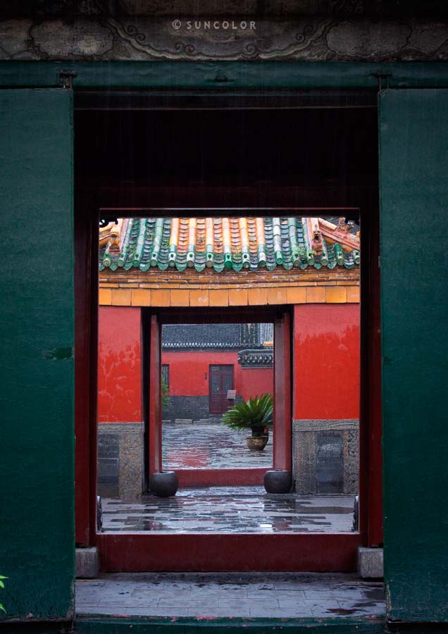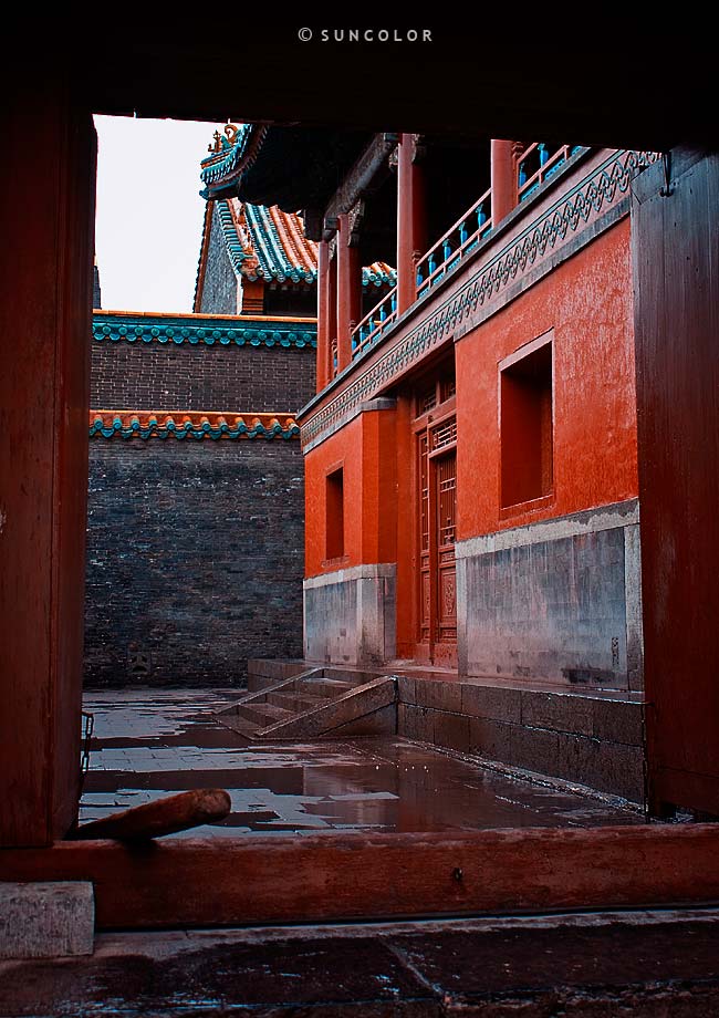 就在淅淅沥沥的大雨中,我们来到了故宫,可能因为下雨,景点旅游的人非常少,相比北京故宫,这里更显寒酸,可能只有北京故宫的10分之一都不到,但是这个迷你的、简体的故宫的门票,却也不算便宜。在门口可以聘请一个导游一路介绍,我们却总是喜欢自己闲逛,当然会少了很多的细节和故事,不过建筑本身就是一种语言,廊前屋角无不轻声述说着一度承载的显赫和尊贵,楼阁林立,殿宇巍峨更是令人不住联想当年的权倾一时,只可惜怎样的雕梁画栋,富丽堂皇,也无法敌过岁月的摧残,一任辉煌渐渐老去,我们在宫殿的走廊里徐徐穿行,慢慢领略,掩不住的沧桑在建筑的缝隙里慢慢向外渗透,于是引得上苍也忍不住悲凉得大雨磅礴。 用了整个下午在这座皇宫园林里细细观赏,历史的记忆维系着昨日与今天,残旧的断壁、模糊的彩绘,却在历史的长河里不急、不躁地随意守望,那些黄色的琉璃瓦,镶嵌着绿色的剪边,在一个灰暗的阴霾的下午,犹自散发出不息的活泼和热烈,此情此景令人满怀感动,岁月无情,人海茫茫,生命中充满了无法掌控的未知,不过总也有许多的期待、回味令人意犹未尽。
