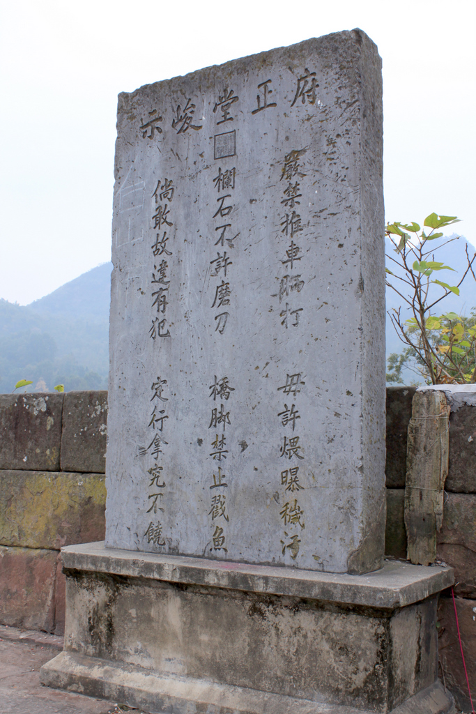按照网上介绍,过“登封桥”,向前十几米的石板路,再向右拐,还是古石板路,两边是镇上人家古老的房子。一直沿石板路赱就可。(石板路和上山的台阶是连接的)这里想说几句得是我很喜欢“登封桥”,桥很宽,青石板铺就,桥头立着明代的护桥石碑,要求严格,此桥才至今保护很好。