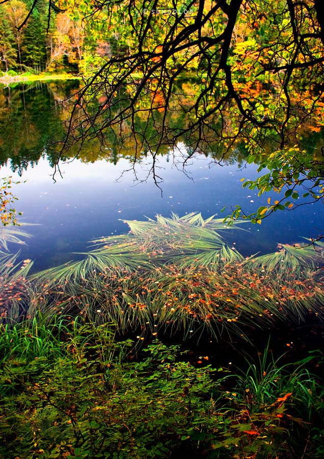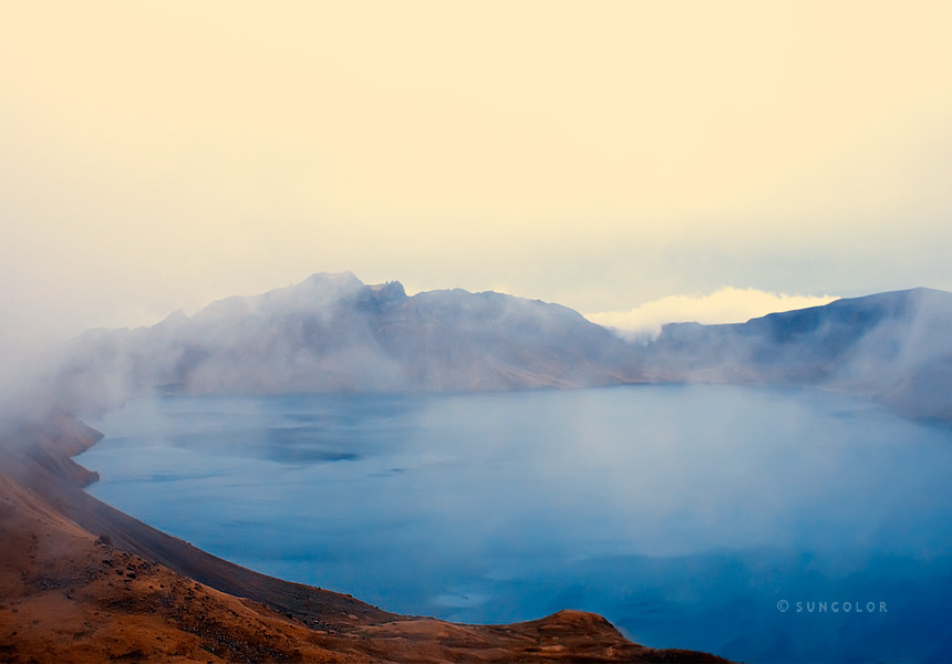 当我们终于攀上山顶大声喘气时,天池却以翡翠般碧蓝的宁静迎接着我们,安静如处子般的那汪清泉镶嵌在山顶上,真是美轮美奂,可喜的是当天山顶上的游客不多,所以那份天池的宁静更是令人久久难忘,正当静静享受之际,突然传来景区工作人员的一声大喝,原来有人跨过景区的警戒线正向远处的山头拔进,工作人员恨恨地说,真要枪毙几个,看还有没有人敢跨过去,听得我顿时一步不敢乱移,看来警示作用的确有效了。 天气越来越晴朗,老公讲如果有太阳就好了,照耀在这块碧蓝的翡翠上,颜色将会变得无与伦比的剔透,看来人总是很贪心的,对于追求有着永无遏制的索求,我们在山顶上久久逗留,据说长白山是韩国人心目中的圣山,所以每年都有好多韩国人会来拜山,一些虔诚的人更会交纳一千元的登山费后,请了导游专门徒步进山更会在山上按寨扎营,山上也在醒目的地方写着不准在此进行祭拜。 终于还是要下山了,步伐也变得无比轻松,跟着环保车,我们又去看了大峡谷,就是一个小小的原始森林,随着一条专门的木质小路,曲折行进在林中小道,景色并无突出之处,只是活泼可爱的小松鼠令游人抓狂,大家争相观看你推我搡,反倒是小松鼠镇静万分全然不理,只是好好啃着手里的果子,让人着实佩服它的定力。 重又回到了环保车上,这次和一群旅游团的游客坐在一起,当到达王池花园时,导游大声说这个景点一点意思也没有,根本没有东西看,我们听了也非常犹豫,最后还是老公说来也来了要不去看一下,于是这辆车上就我们两个下来去了王池花园,不过一走入景区,就知道老公的选择太正确了,虽然遍地的野花已经凋谢,不过秋天的色彩在枝头却是异常的浓郁,层层叠叠的色彩渲染着季节的成熟,碧绿的天池与五彩的参天大树,相守相望,犹如人间仙境般的与世无争,偶尔瞥见尚未凋谢的花朵在风中轻轻摇曳孤独吟唱,不仅让人驻足凝望万分爱怜。