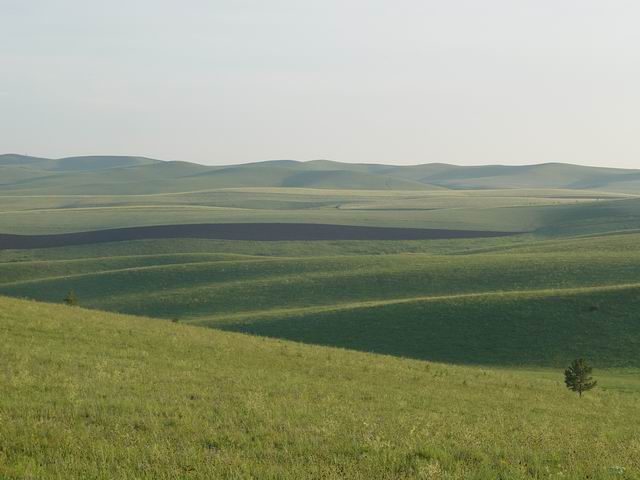 接着,我们的车就开进了一望无际的草原,一条路一直通到天边,它宛如一条线把天底下平分为两片绿,绿,这里除了绿还是绿。世界,在这里变得多么的辽阔,多么的平静!原来,世界还可以这样的简单。