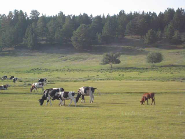 一下飞机,坐上小别克从海拉尔直奔阿尔山。哇----!这是我们四位驴友的第一号声,原来是为小山坡的几十头奶牛而发。“瞧!好多好多的牛!”“它们都是黑白、黄白的斑点,好漂亮!”“瞧!有小牛正在吃奶,快拍快拍”“鲜奶!我要喝!”“师傅停车,放她下去当小牛”“你们这班山里来的,真是少见多怪喔,师傅你在笑吗?”二十几岁的张师傅有点害羞否认。