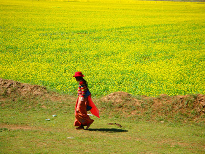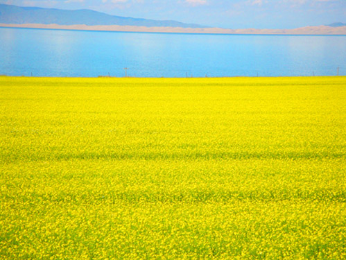 每年的七月中旬至八月中旬,是青海油菜花季。蔚蓝色的青海湖与金黄的油菜花相映成趣,吸引了无数喜欢“沾花惹草”的人们,连一年一度的环青海湖国际自行车拉力赛都特地选在这灿烂的花季里进行。 来接站的罗导,父亲是汉族母亲是藏族,她是藏汉民族的结晶。罗导略黑的俏脸上印着淡淡的高原红,洁白的牙齿,灵气的双眸,很漂亮的一个女孩子。有这么一个美女导游陪着我们一起赏花事,我们大伙坐了一天一夜长途列车的疲惫全都不见了,每个人都亢奋得很。我们有一个同伴,虽然永远也记不住纳木错的名称,但一下子就记住了罗导长长的QQ号,呵呵。 简单在吃完中饭,顺便预订了晚餐的一只烤全羊,我们抓紧时间去日月山和青海湖。到了日月山,下车前罗导特地“点到为止”地提醒我们,在文成公主庙内烧香要小心些。进了文成公主庙,马上有盛装的美女讲解员来免费为我们讲解。文成公主庙很小,几分钟的讲解很快就结束了,但这免费的讲解只是个让游客解除戒心的花招,接下来,美女讲解员邀请我们进入一间房间,说是里面的“活佛”可以免费为大家开光。我马上明白,这就是我们“等待”的陷阱,于是我用闽南话小声地提醒同伴,于是大家安全地止步于门槛前。回来后看到有些游记,就提到了这个庙里烧香的陷阱,进了那道门,没花个千儿几百的,根本出不来,在此也特别提醒往后游客们对该庙的“烧高香”小心提防! 从西宁到过日月山,再到青海湖,一路上油菜花田很多,有些地段油菜花田更是集中成片,灿烂热烈。单株的油菜花简直不能算花,油菜花美就美在数量上,连片的金黄,气势壮观震撼,让我们见识了什么叫“团结就是力量”。 远远可以看到青海湖了,湖水在岸边金黄油菜花的烘托下,更显幽蓝深邃。中国最大的湖泊居然是深藏在青藏高原中,颇出乎人的意外。大西北大西北,西部是名符其实的大呀!且不说青海湖是我们国家最大的湖泊,单单看西部有些乡镇的面积达到惊人的五万平方公里,比台湾还大上百分二十!(新疆罗布泊镇,面积5.2万平方公里,属于中国面积最大的县新疆若羌县,面积20万平方公里,比江苏和浙江省的加起来还大四千平方公里!)实在够令人瞠目结舌! 汽车沿着109国道(即青藏公路)在湖边疾驶。靠湖一侧,大片油菜花田从路边一直延伸到湖水边,碧蓝的青海湖仿佛浮在油菜花之上。一路上,金黄、深蓝,再加上当地人摆摊设点提供的白牦牛、骏马和色彩绚烂的藏装,如此缤纷斑斓,游客们哪受得了此等诱惑?纷纷驻足,下车拍照,青海湖最经典、最美丽的画面让所有游客深深陶醉了。我的第一次青藏之旅,也在这青海湖畔的艳遇中划上最完美的句号了。 zmuer@sina.com