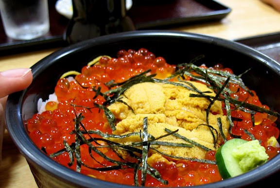 在路上看到一個賣いくら(ikura 鮭魚卵)的攤位