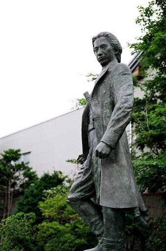 在前往五稜郭的路上 看到土方歳三的雕像還有箱館戰爭的紀念碑